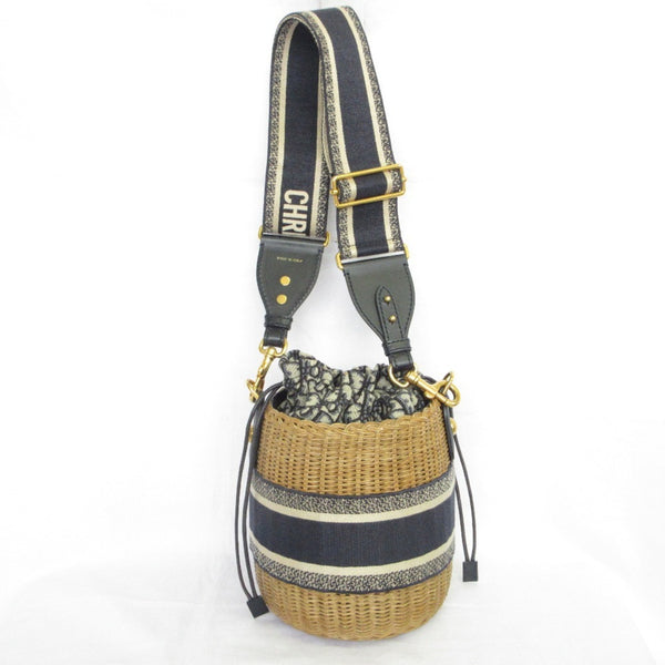 Christian Dior Oblique Wicker Shoulder Bag 63-MA-1200 Navy/Natural Women\'s