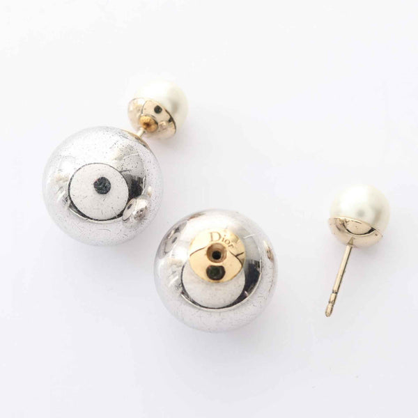 Christian Dior Tribal Earrings, Gold-Plated with Faux Pearls, Women\'s, White, Gold, and Silver