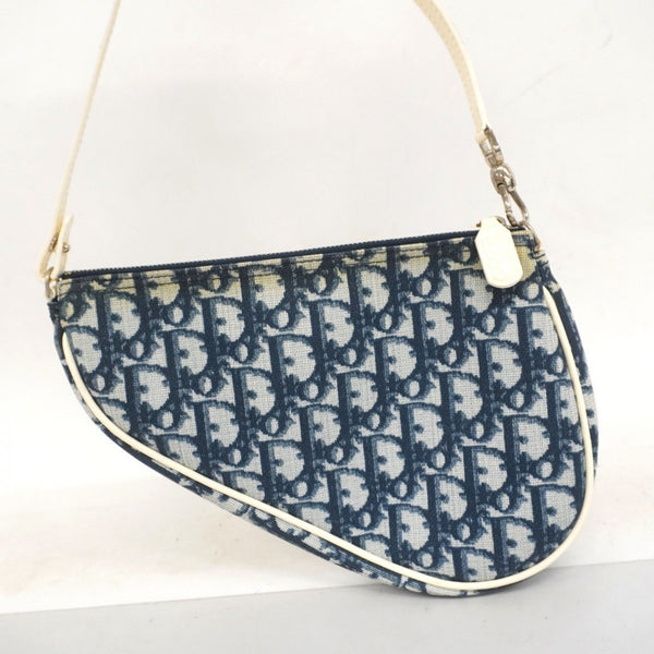 Christian Dior Trotter Saddle Handbag Navy White Women\'s