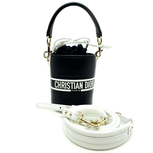 Christian Dior Wave Micro Bucket Women\'s Shoulder Bag Leather Navy