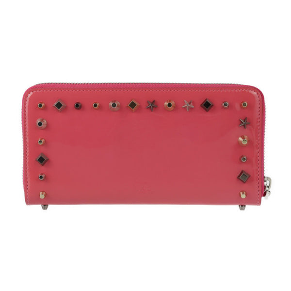 Christian Louboutin PANETTONE Long Wallet 3175067 Patent Leather Pink Round Enamel Studs 2428063001157R1