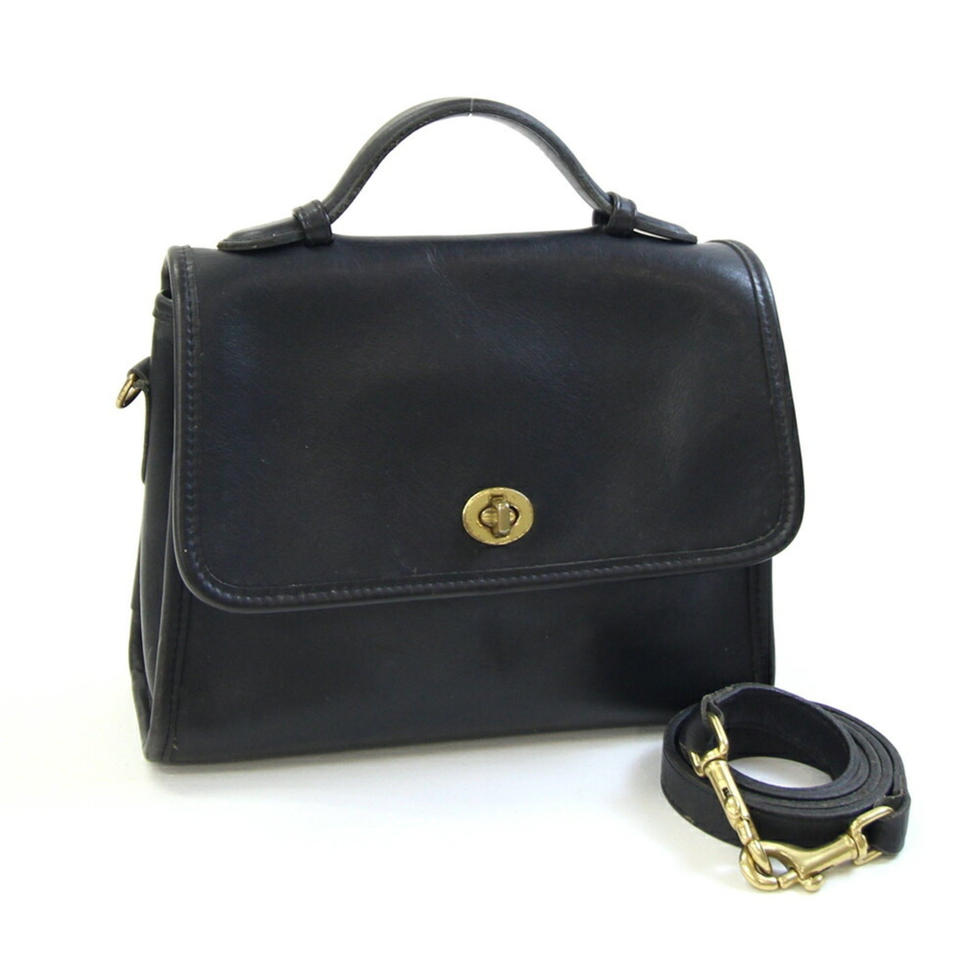Coach 2WAY Handbag 9870 Black Leather Shoulder Bag Turnlock Old Women\'s COACH