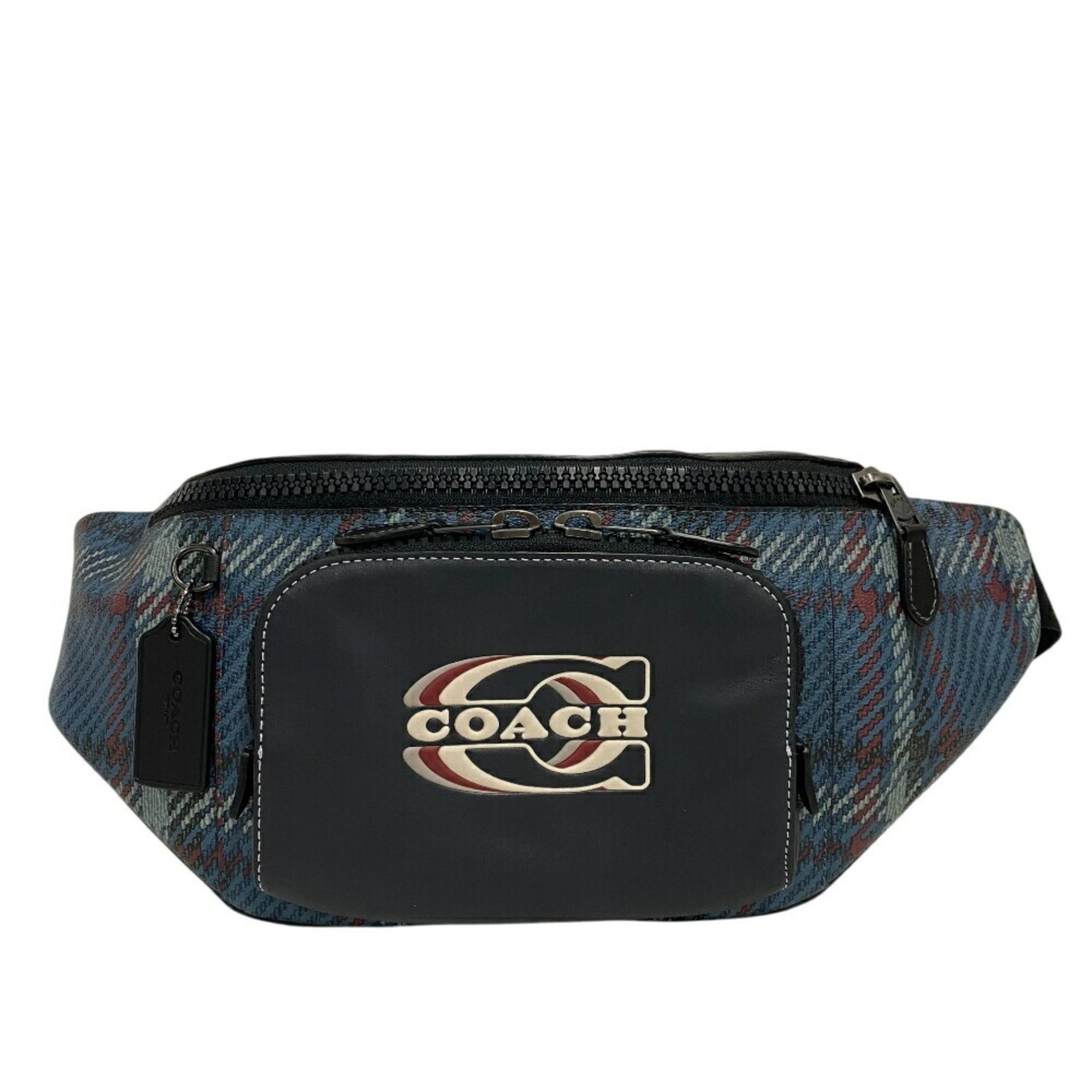 COACH CH109 Waist Pouch Check Body Bag Shoulder Blue Unisex