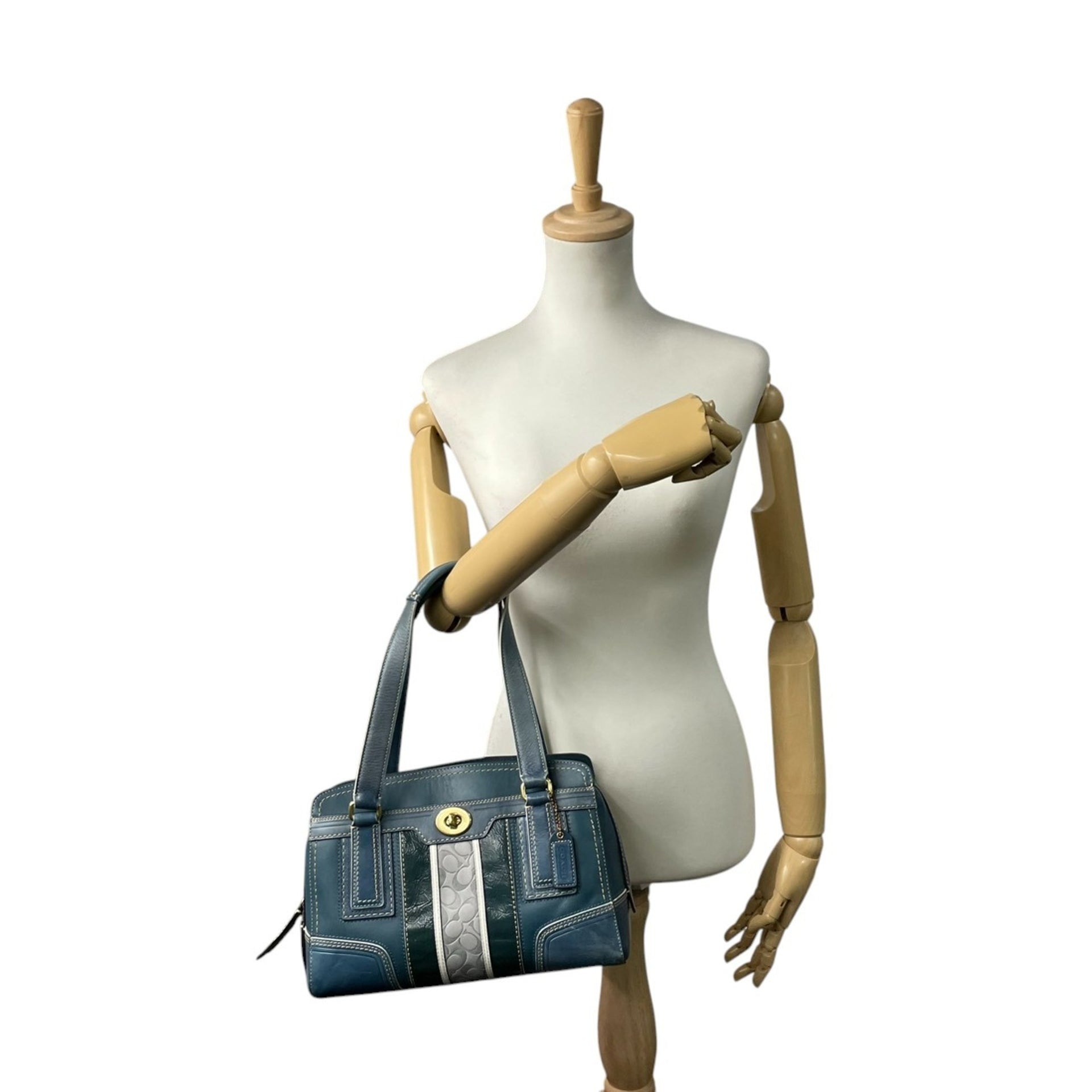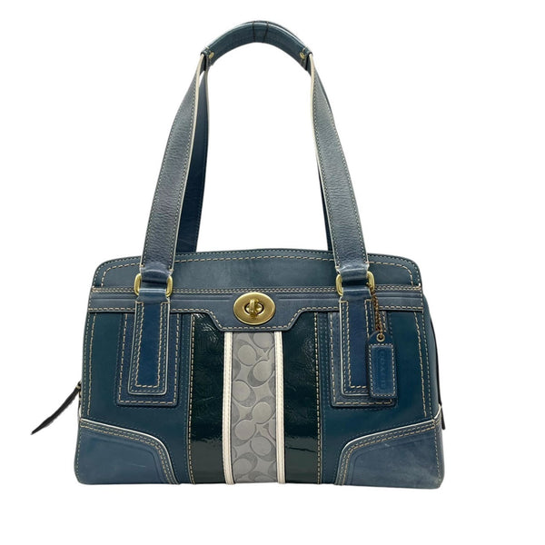 Coach Hamptons Leather Carryall Handbag/Tote Bag, Blue, 11060, Signature Stripe Patent Leather, Women\'s, Size s60