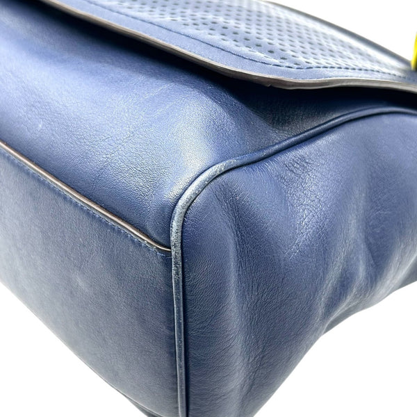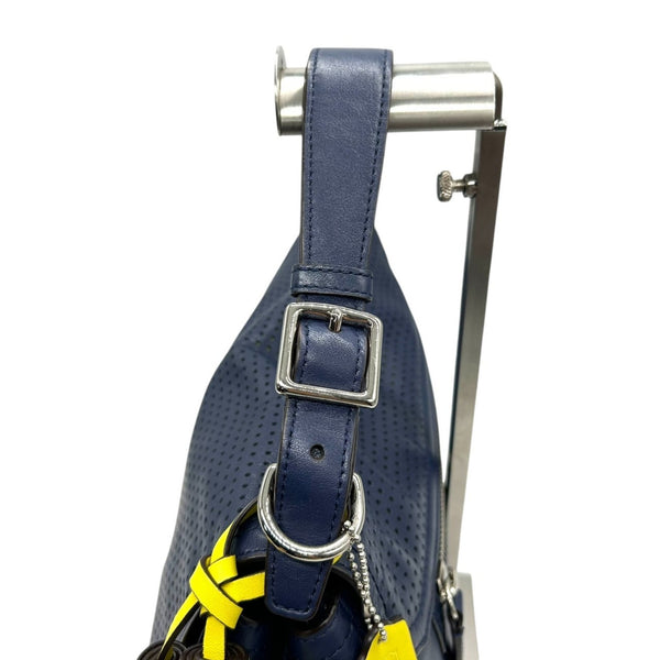 COACH Legacy 22386 2-Way Handbag/Shoulder Bag in Perforated Leather, Navy and Yellow, Women\'s, S31