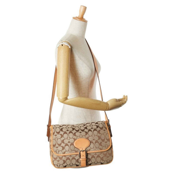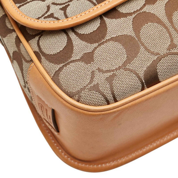 Coach Signature Crossbody Shoulder Bag in Beige and Brown Canvas Leather for Women