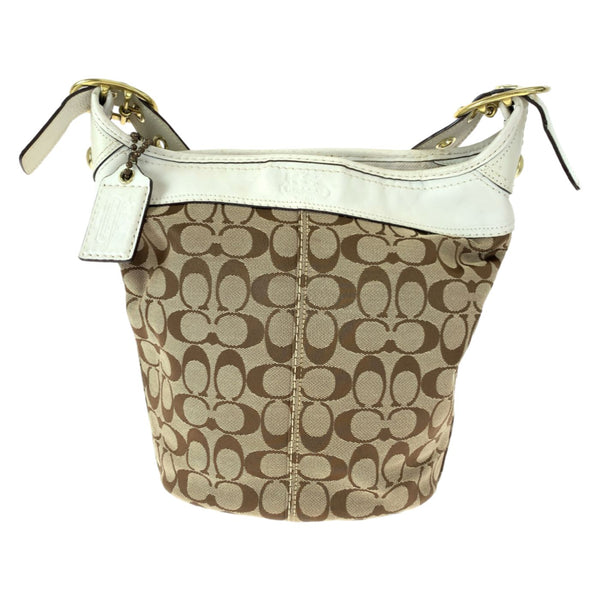 COACH Signature Duffle Beige White Canvas Leather 11437 Hobo Shoulder Bag Crossbody for Women