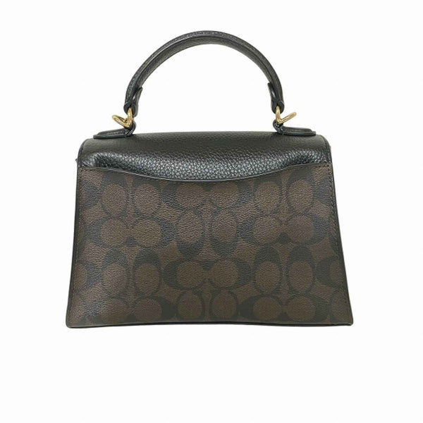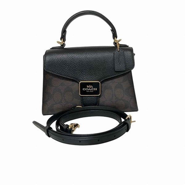 Coach Signature Pepper Satchel C7226 Black and Dark Brown Leather Handbag Shoulder Bag for Women