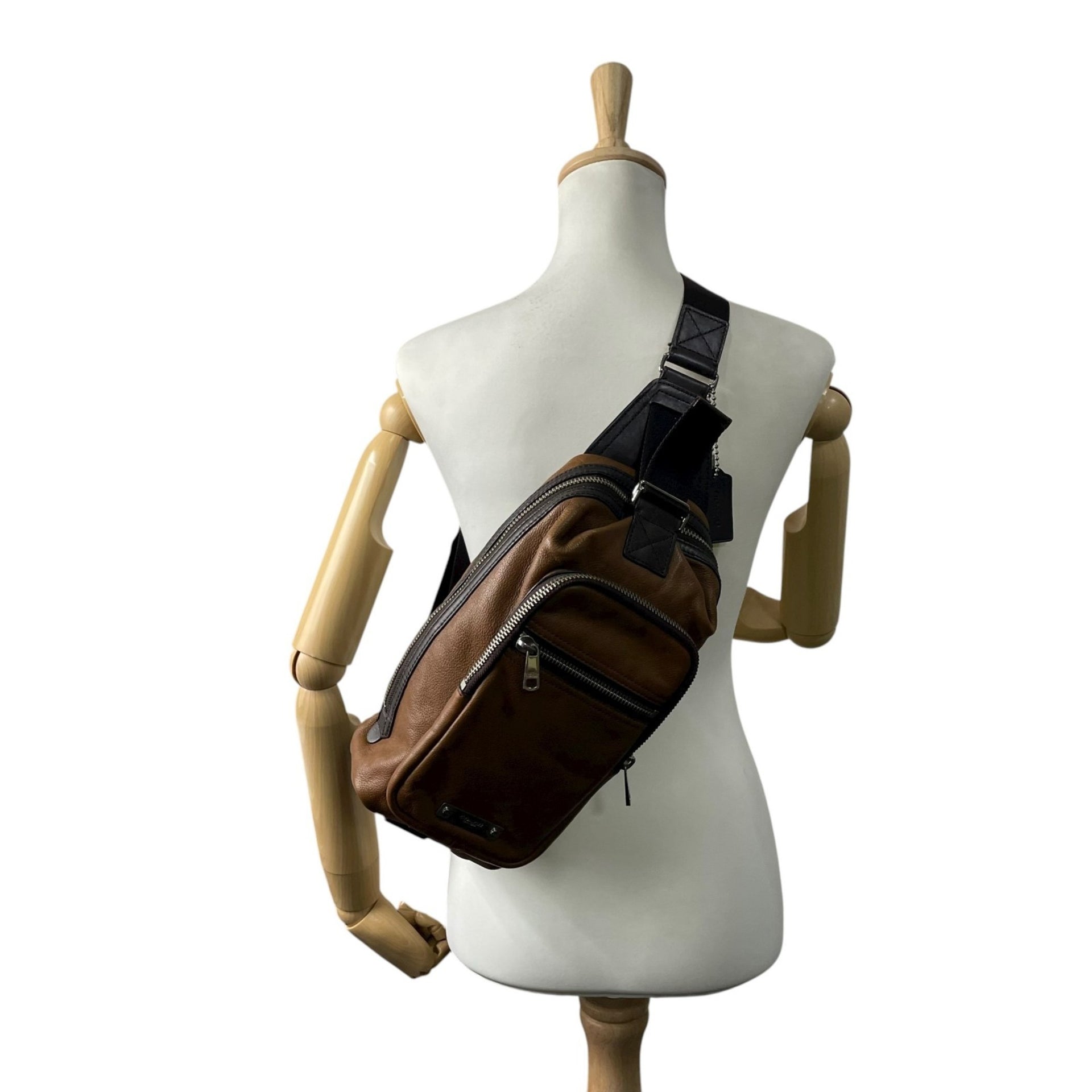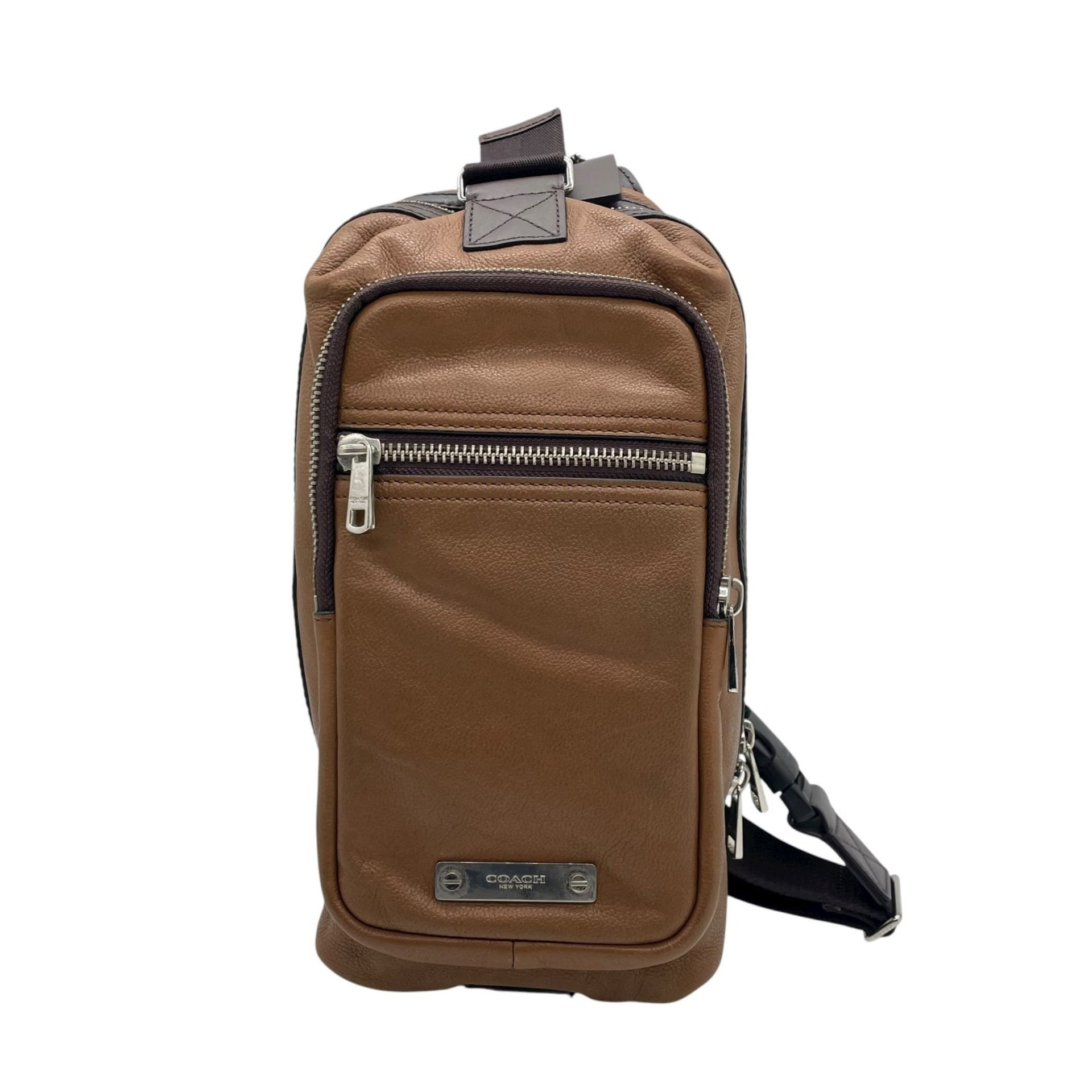 Coach U2 Leather Body Bag, One-Shoulder, Crossbody, Brown, Silver Hardware, Men\'s and Women\'s