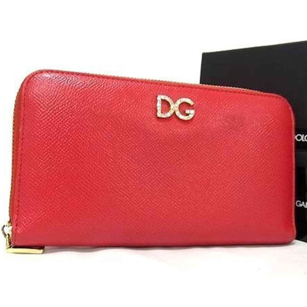 DOLCE & GABBANA Women\'s Red Leather Rhinestone Round Long Wallet