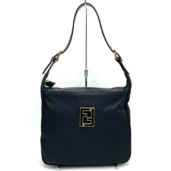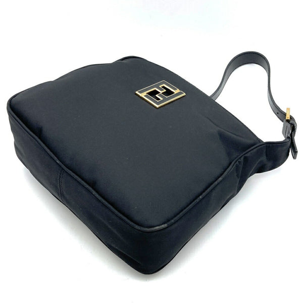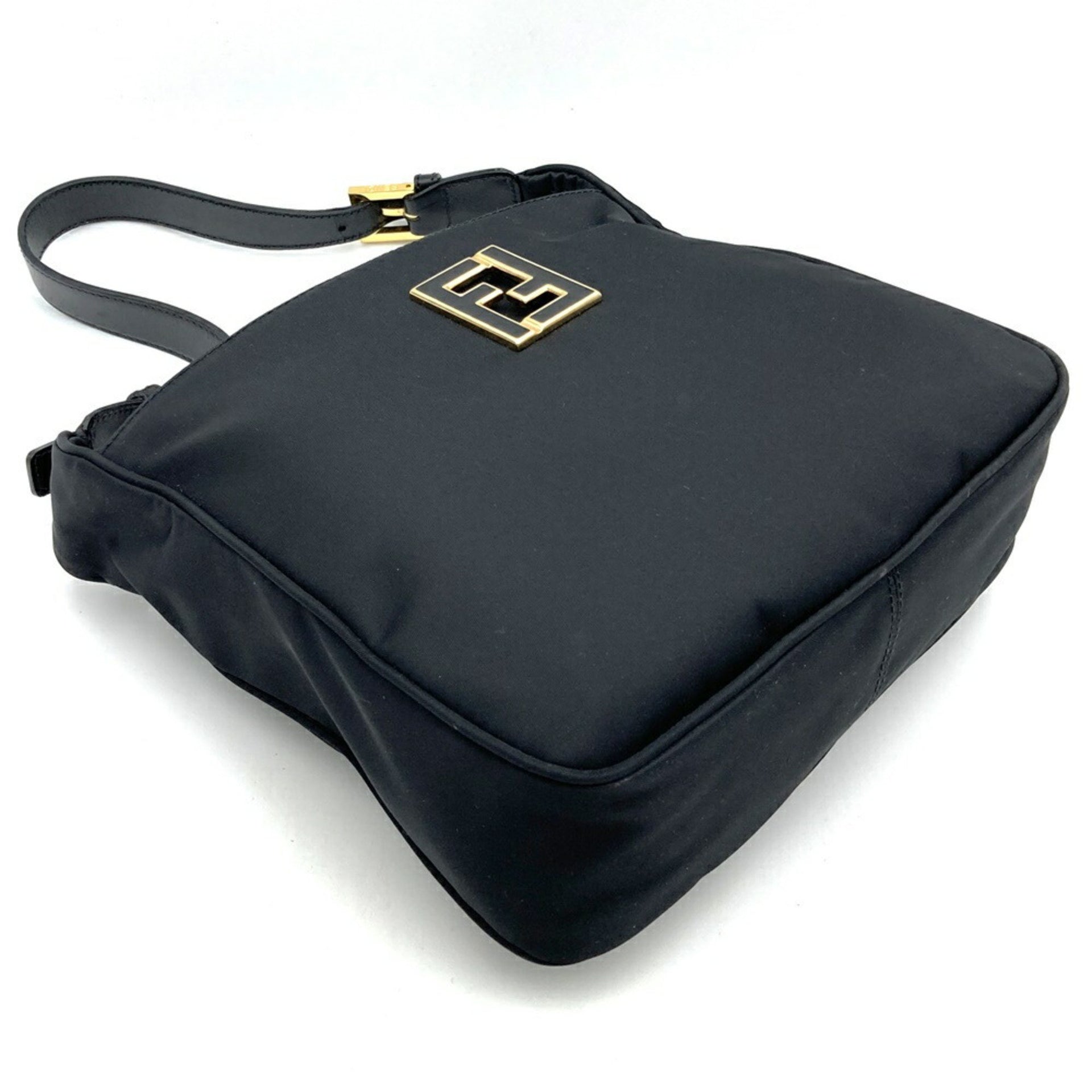 FENDI 06 11 15328 982 Shoulder Bag FF Nylon Leather Black Women\'s