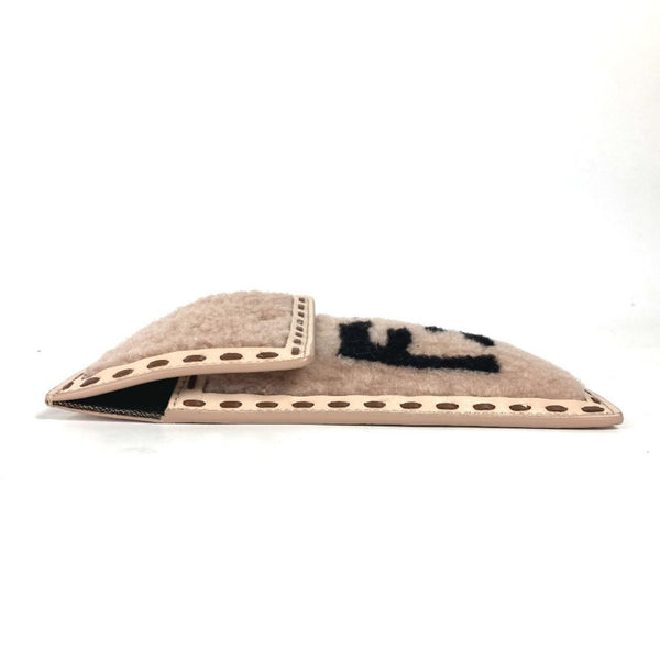 FENDI 7AS047 Smartphone Case Phone Pouch Bag FF Logo Fur Charm Leather Women\'s Beige