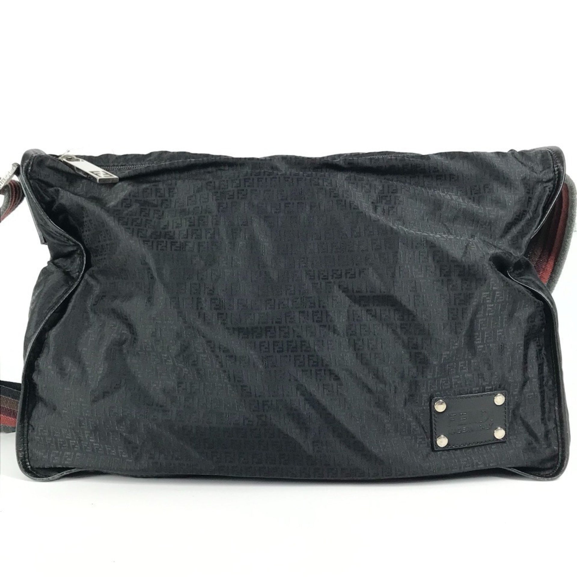 FENDI 7VA148 Zucca Logo Bag Crossbody Messenger Shoulder Leather Nylon Women\'s Black
