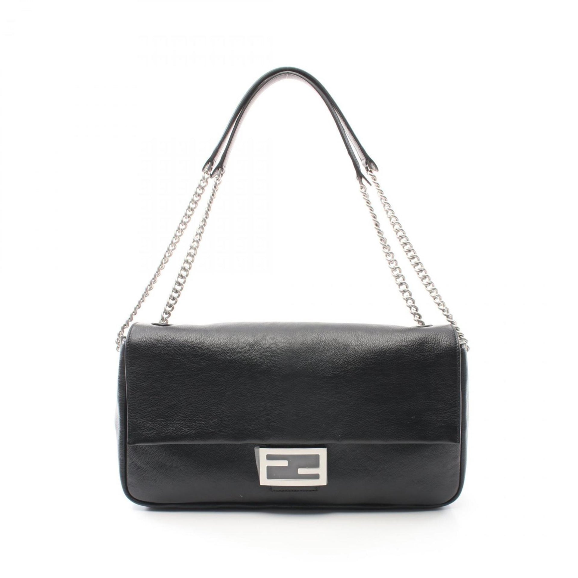 FENDI Baguette Chain Large Shoulder Bag Leather Women\'s Black 8BR828AS7A F1QD0