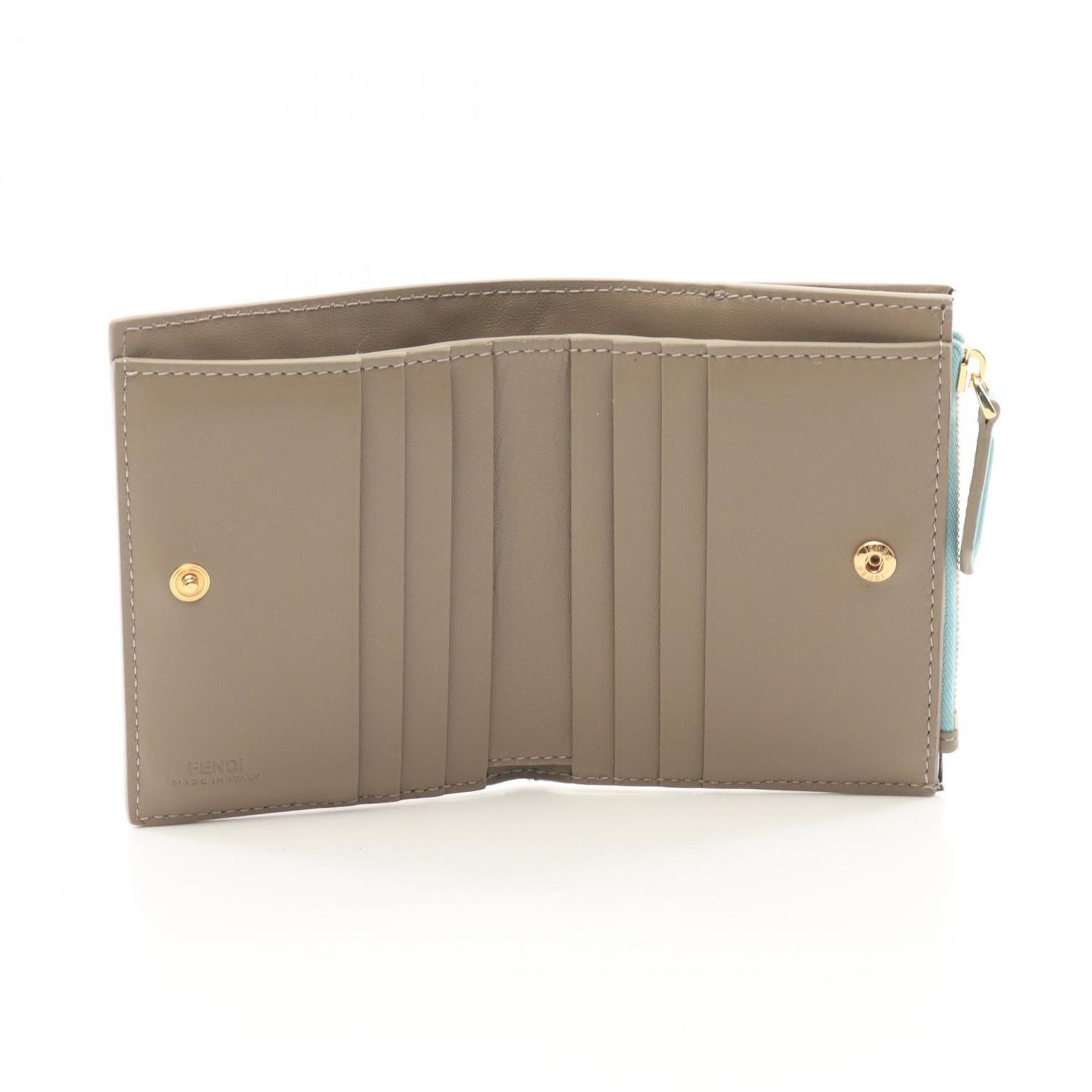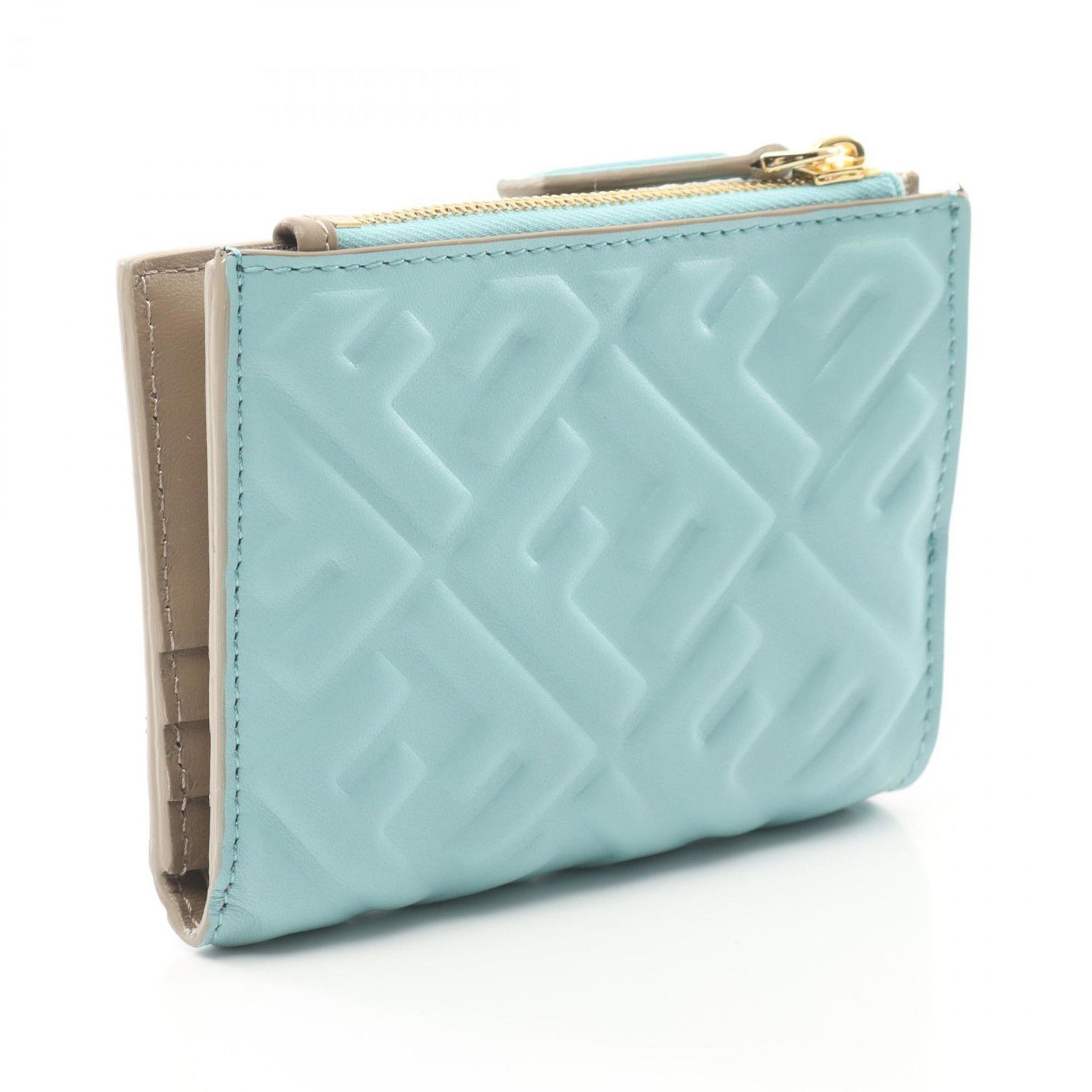 FENDI Baguette FF pattern bi-fold wallet, leather, women\'s, blue, beige, 8M0506AT00F1PQI