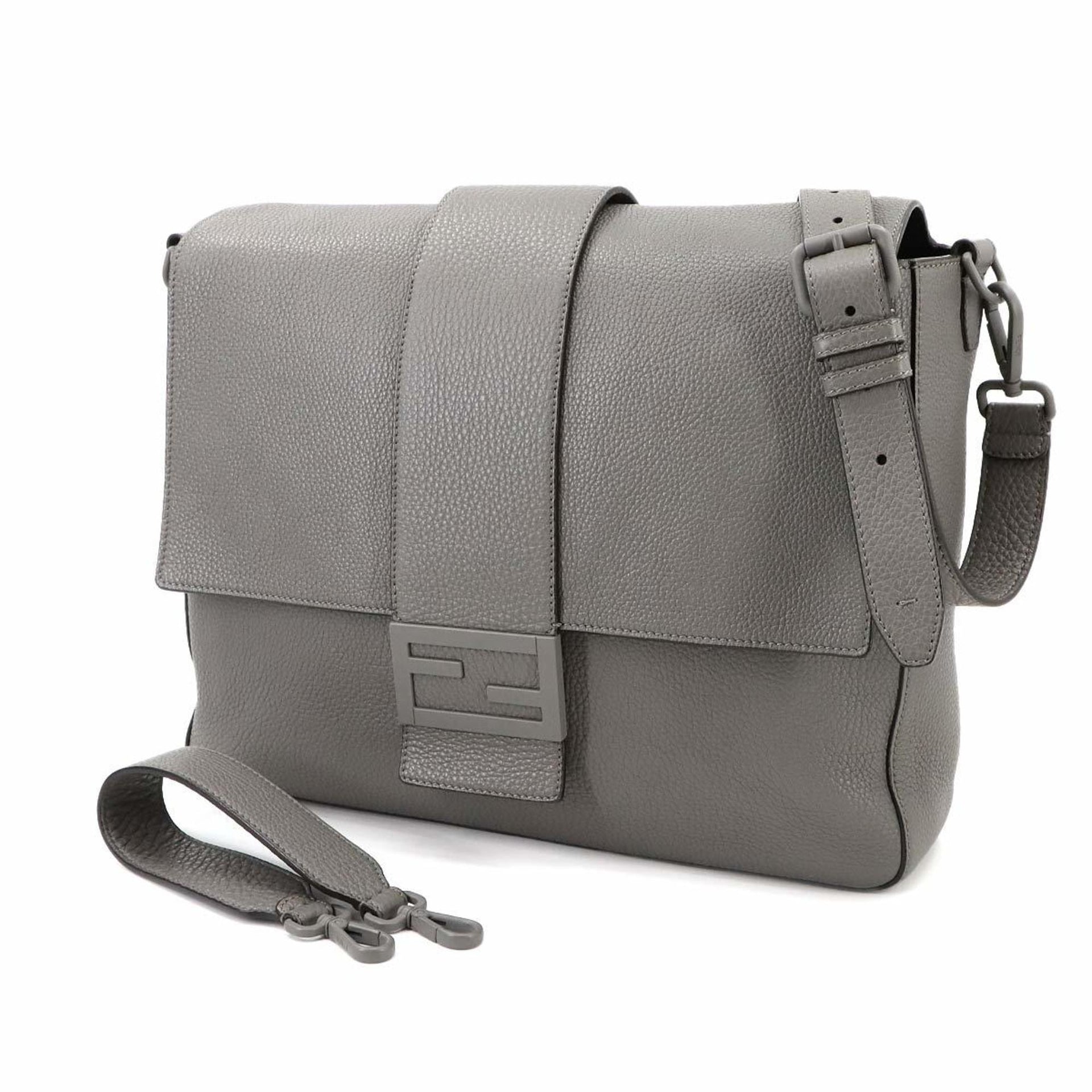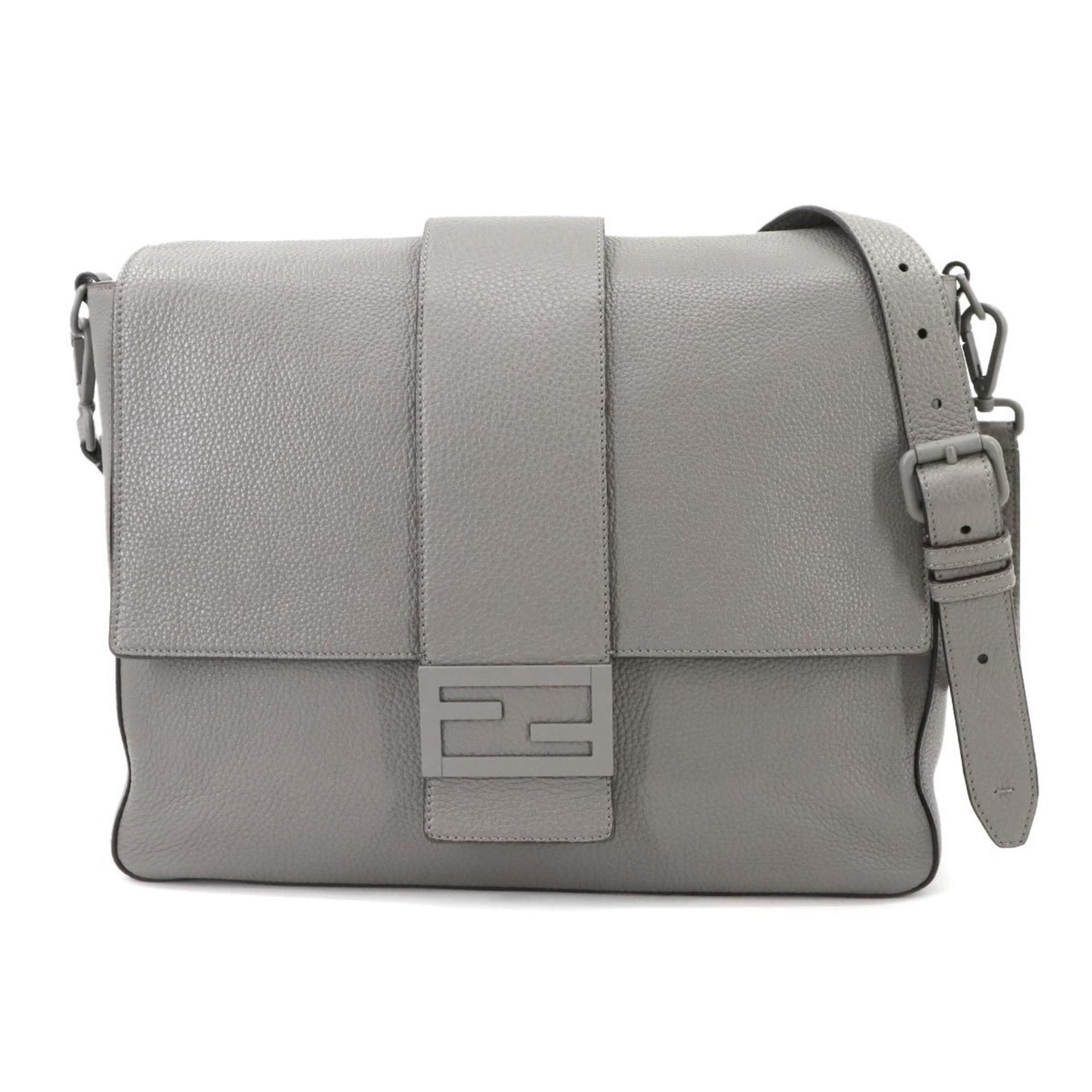 Fendi Baguette Shoulder Bag in Grey Leather with Silver Hardware (7VA536)