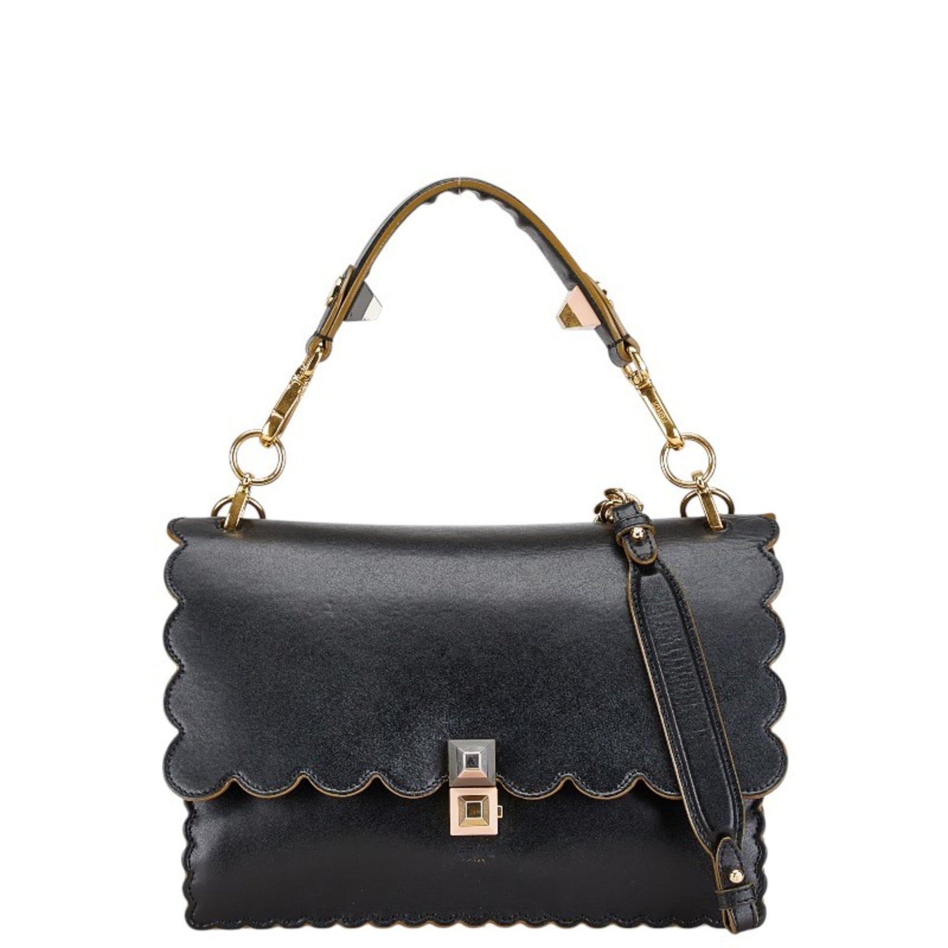 FENDI Canai Chain Shoulder Bag Handbag 8BT283 Black Gold Leather Women\'s