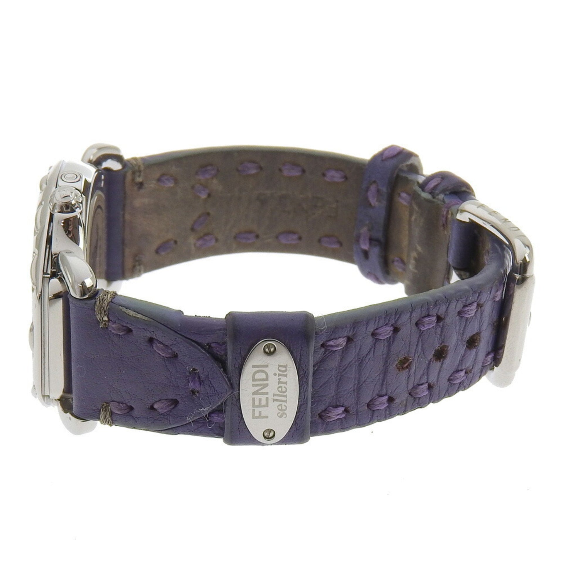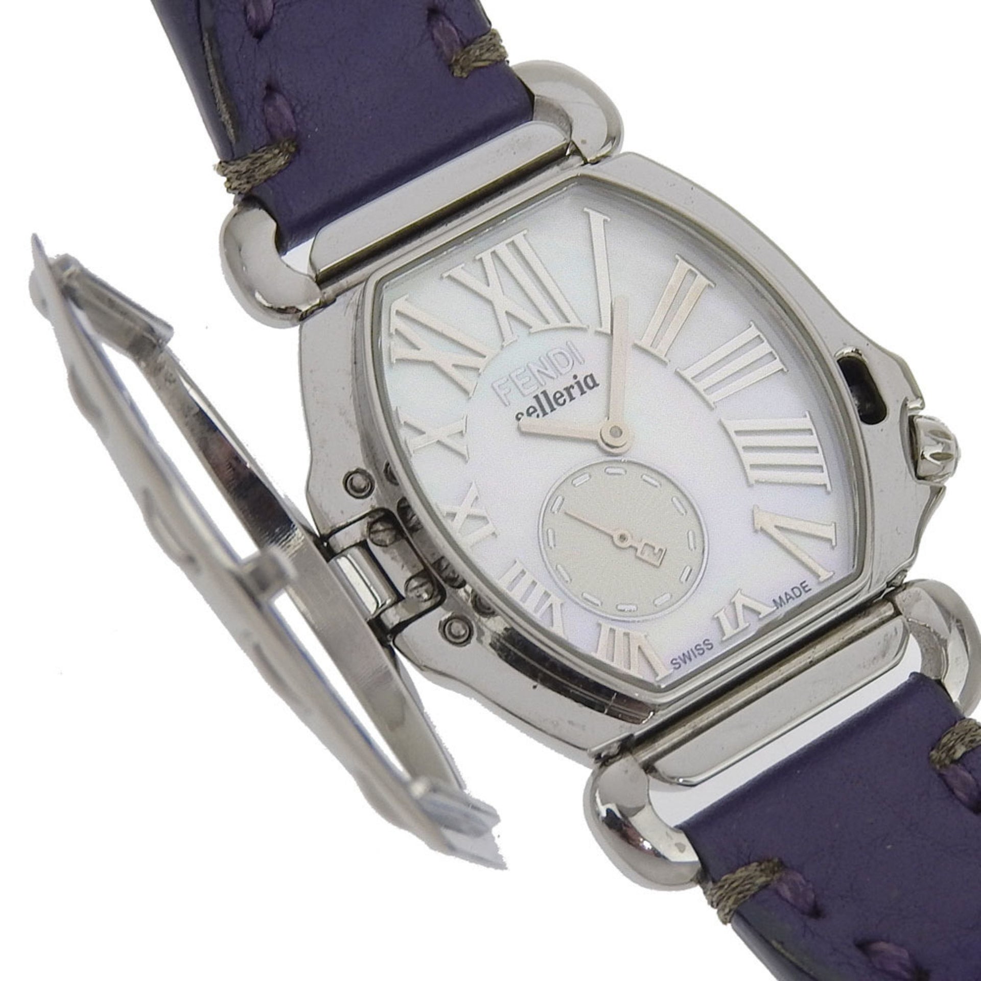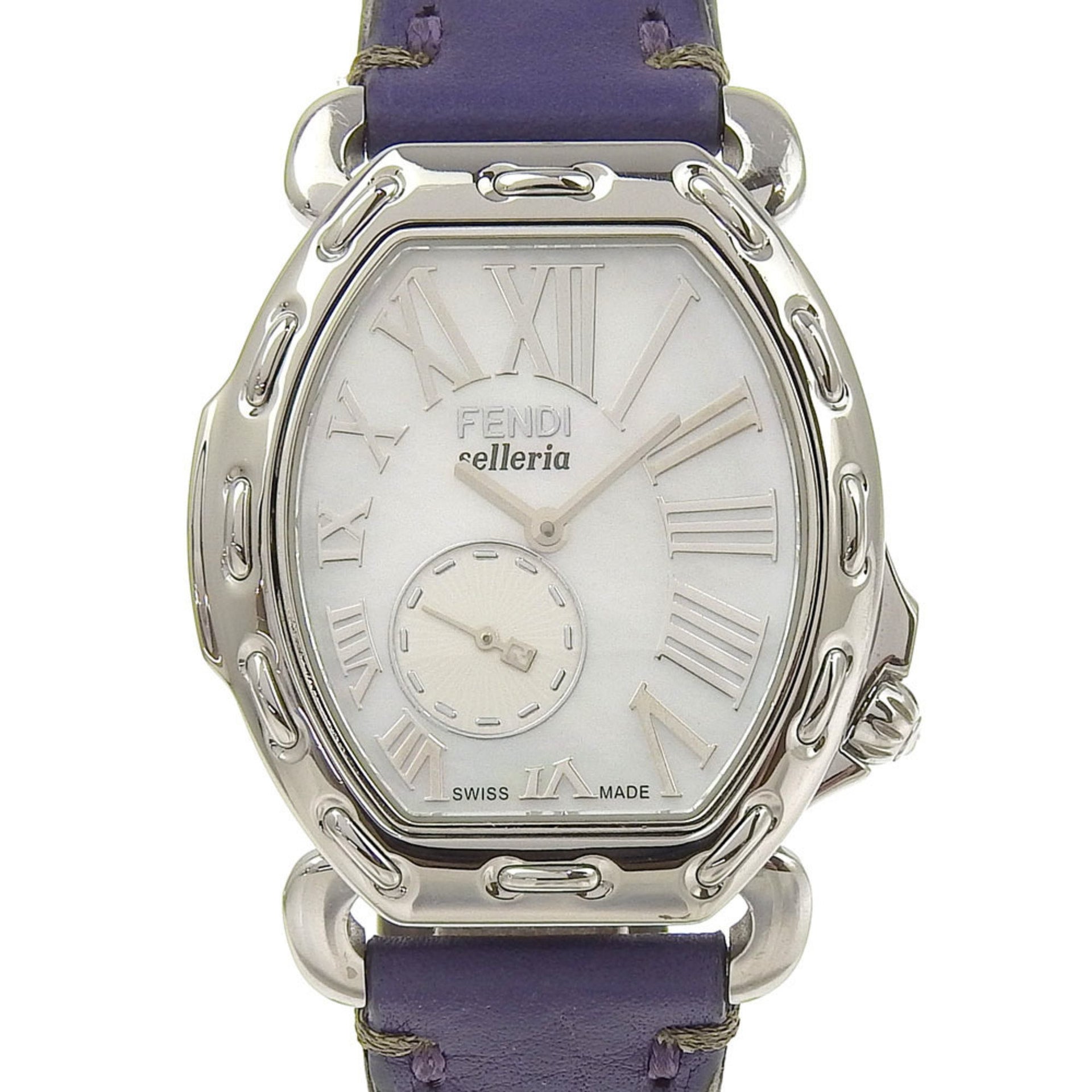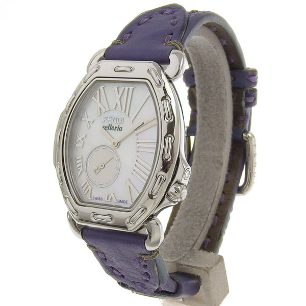 FENDI Celeria Watch 8400M Stainless Steel x Embossed Leather Quartz Small Second White Shell Dial Boys