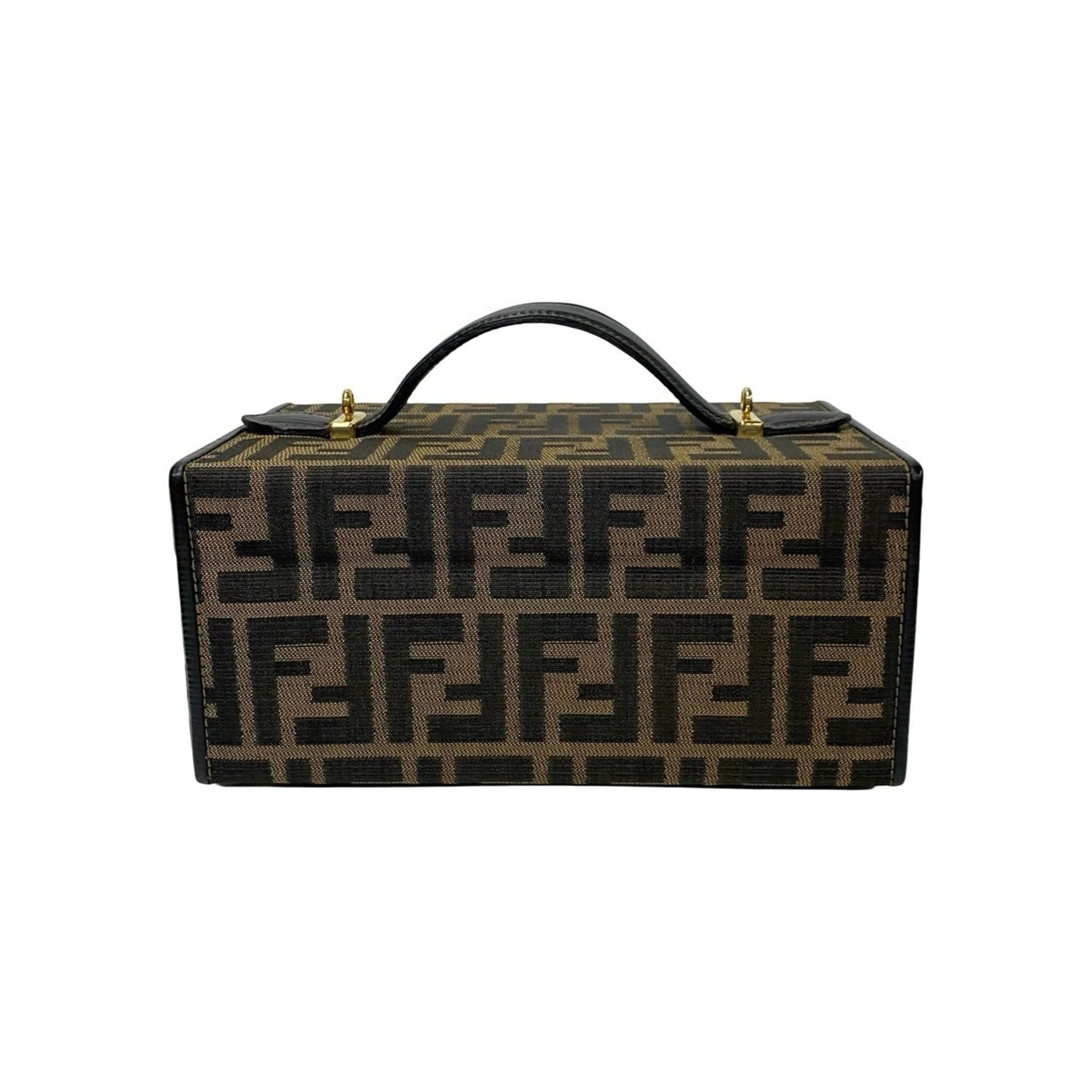 FENDI Dial Lock Vanity Bag with Zucca FF Pattern, Canvas and Leather, 2-Way Handbag/Shoulder Bag, Brown, 31472