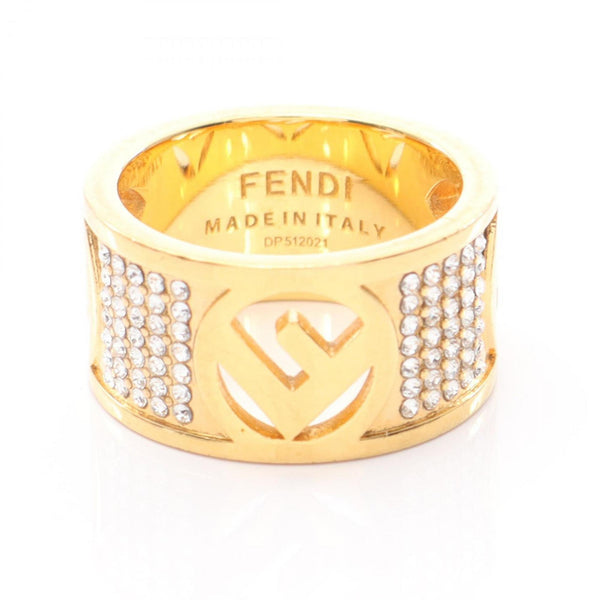 FENDI F is Fendi Ring, Gold Plated with Rhinestones, Women\'s, Gold/Clear