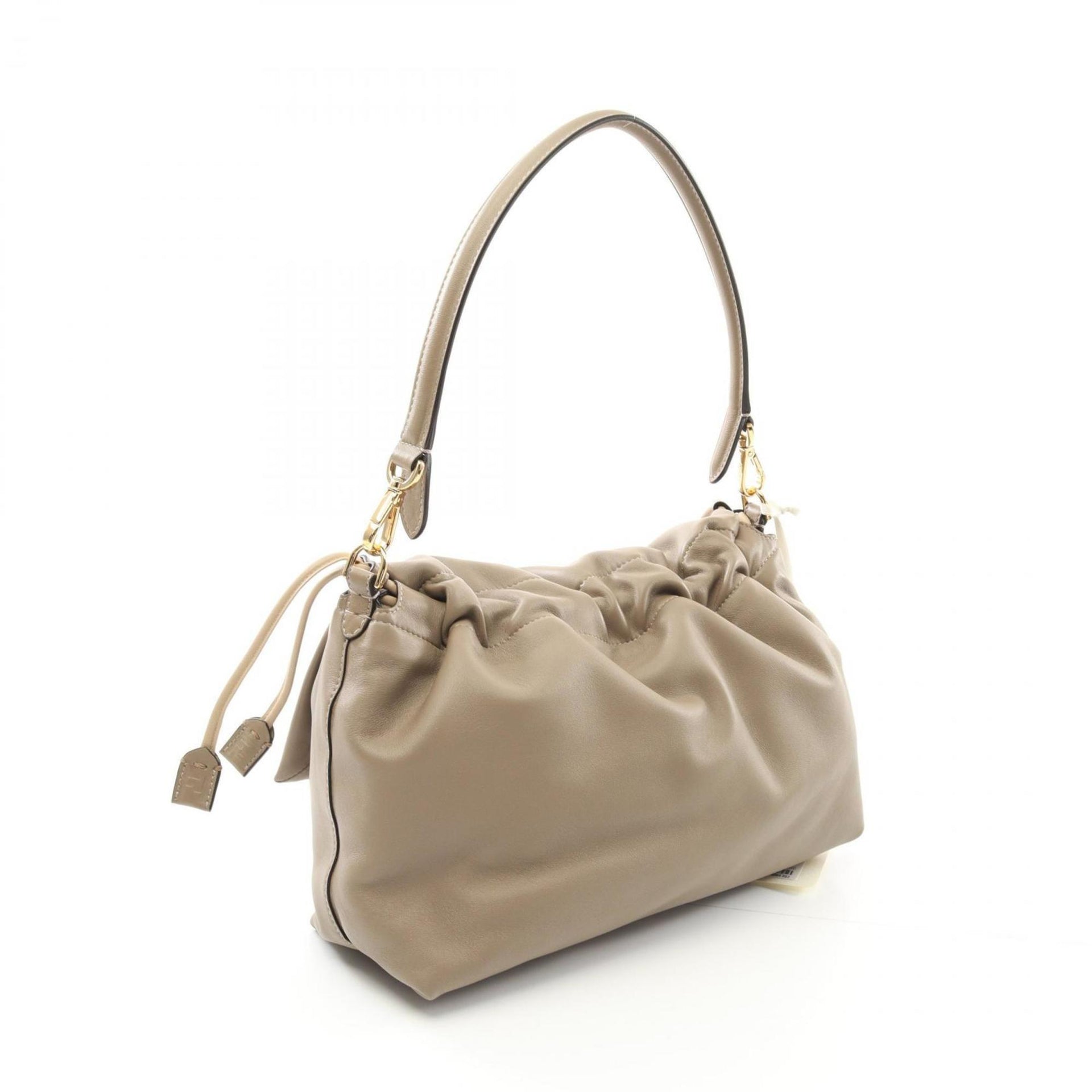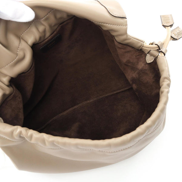 FENDI Mamma Baguette Large Shoulder Bag Leather Women\'s Beige 8BR834AQ0DF0E65