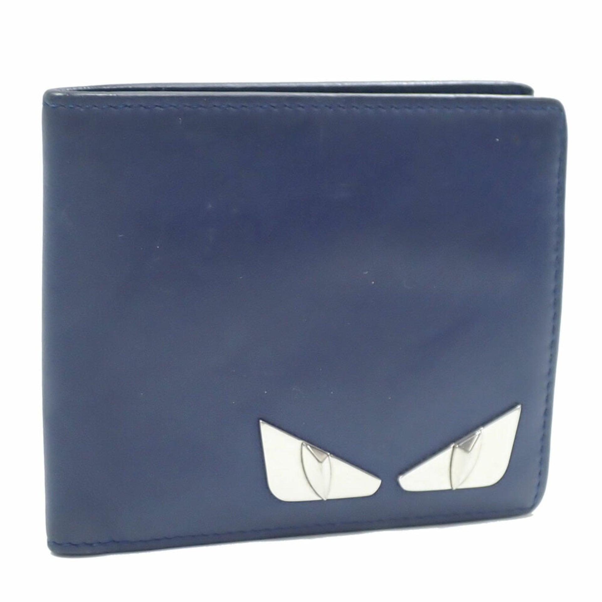 Fendi Men\'s Blue Leather Bifold Wallet 7M0169 Monster Eye Bugs A2244536