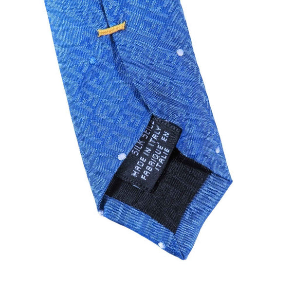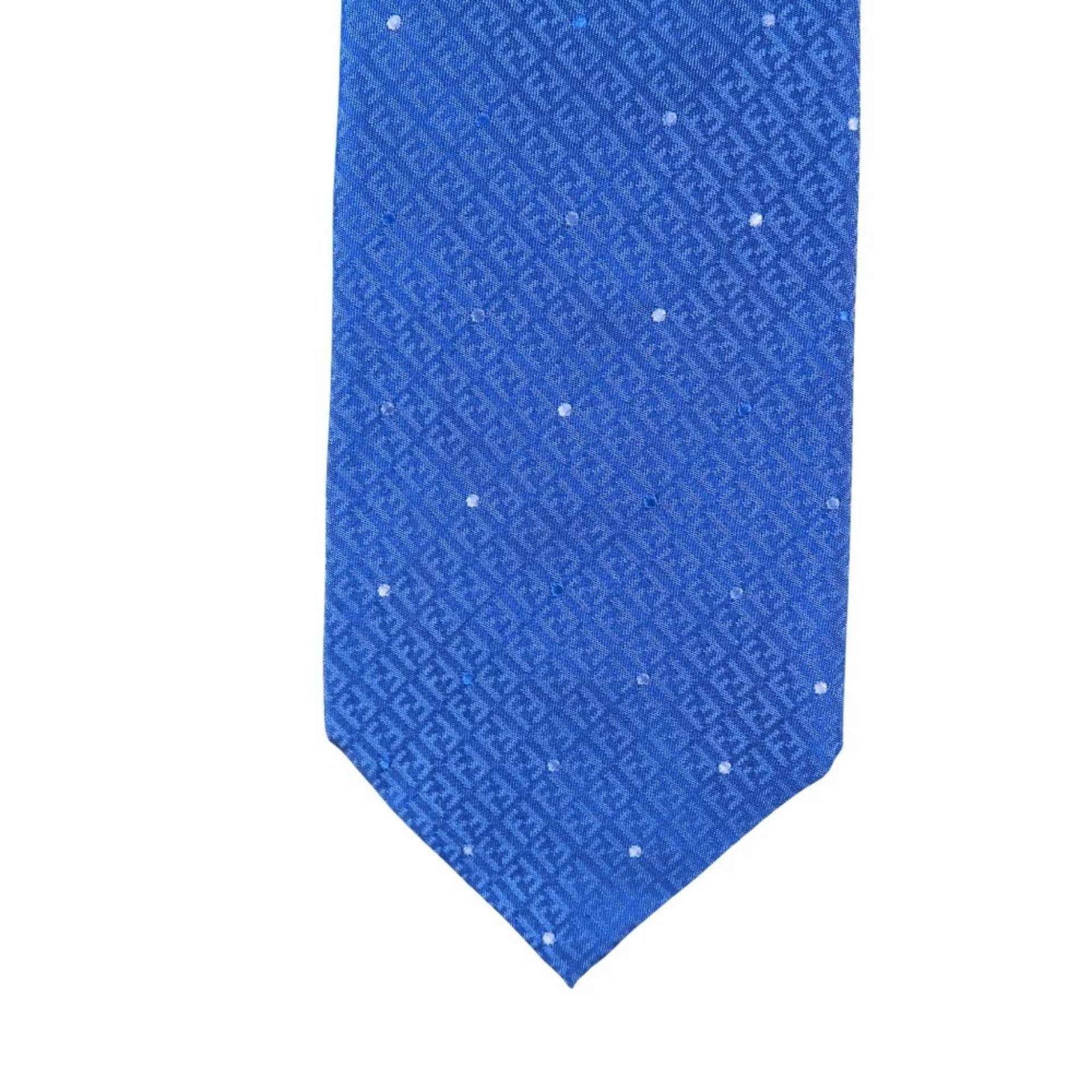 FENDI Men\'s Silk Tie with FF Logo, Zucca Pattern, and Dot Embroidery, Blue