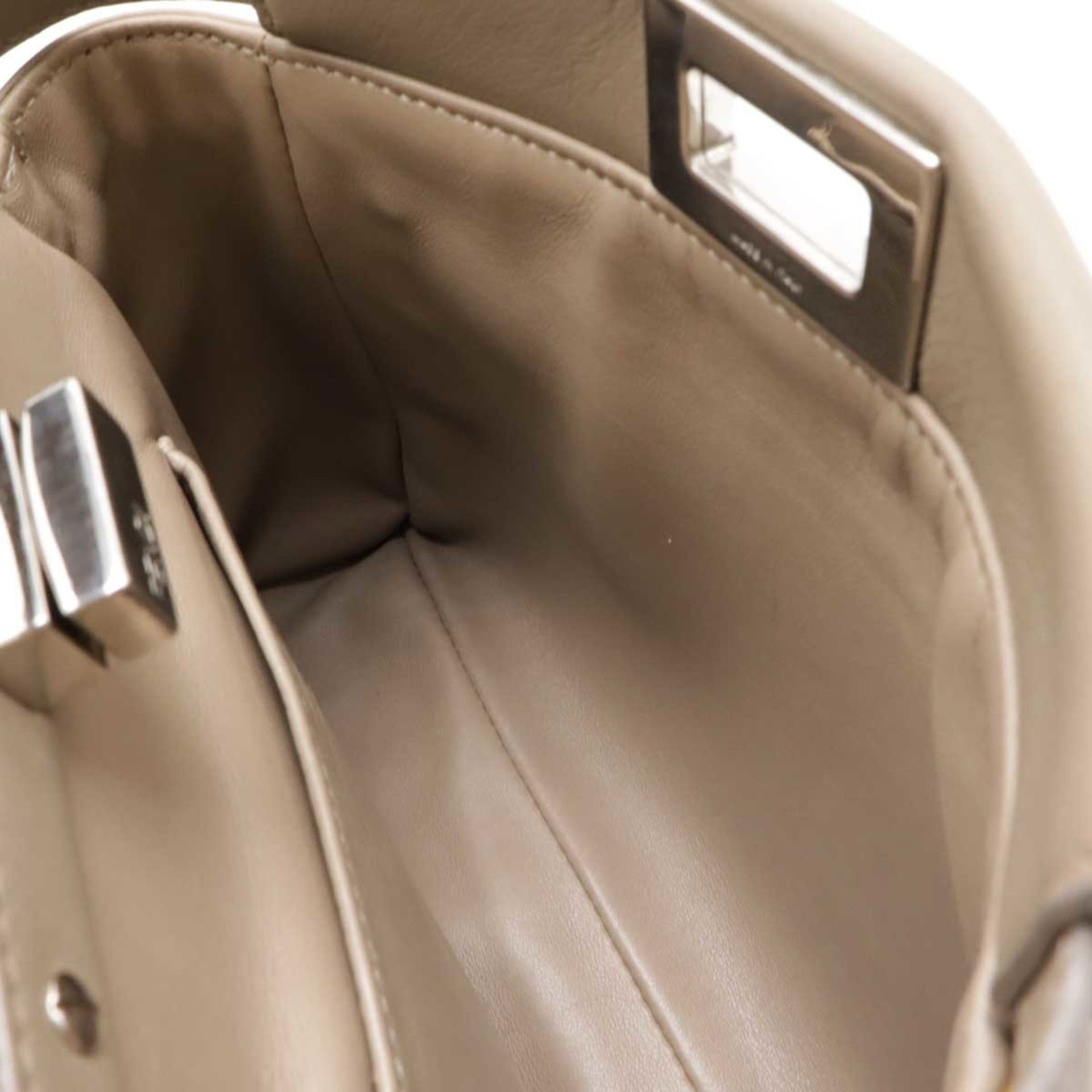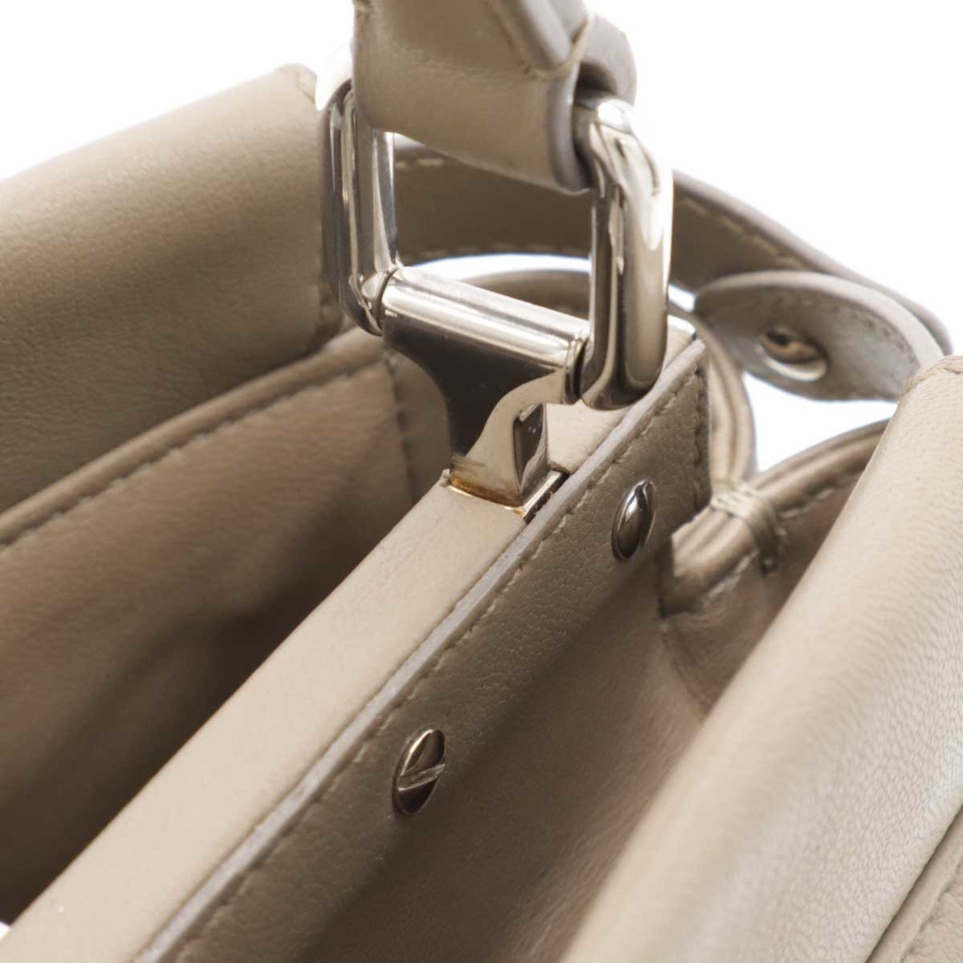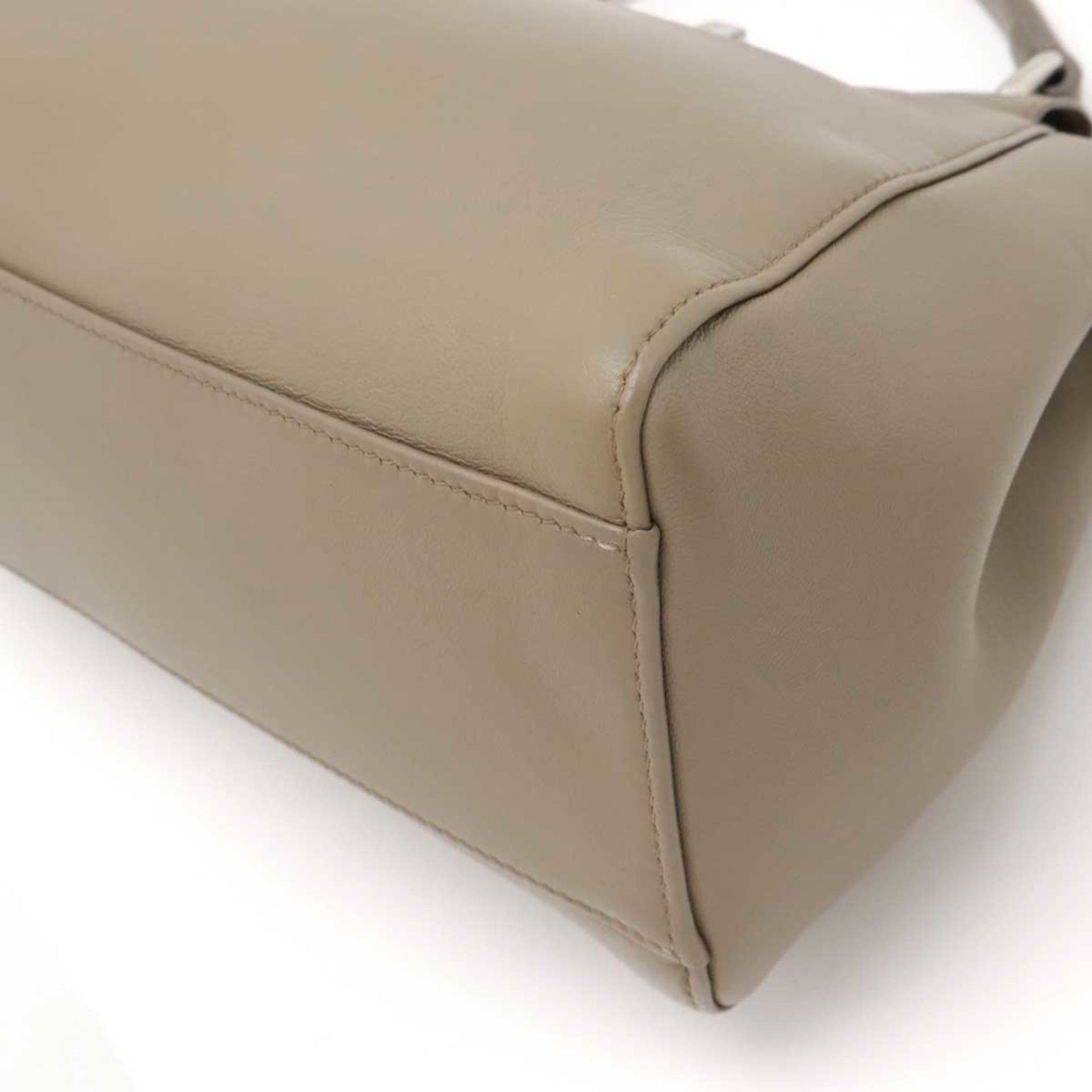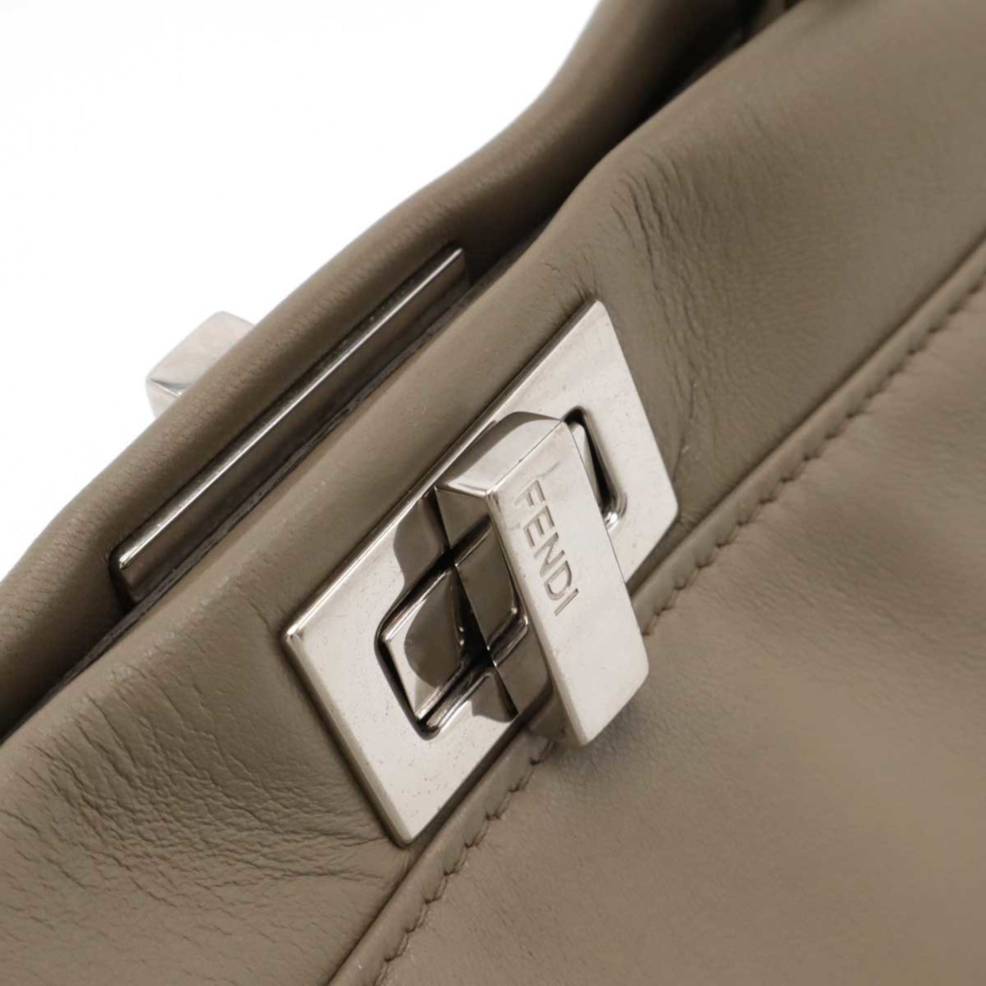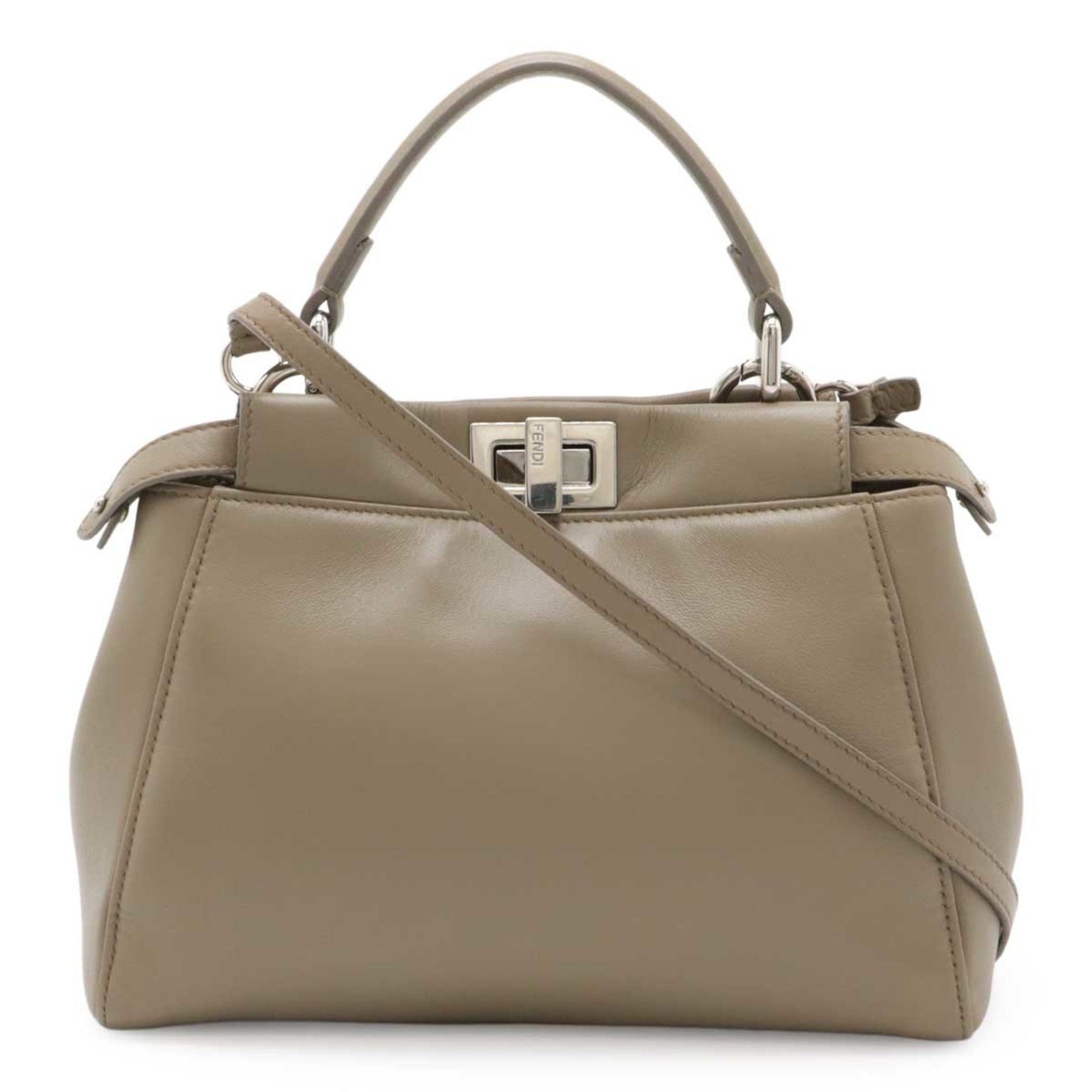 FENDI Mini Peekaboo Handbag Shoulder Bag Leather Greige 8BN244