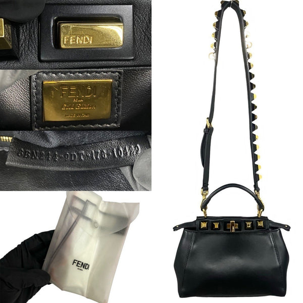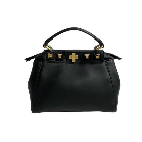 FENDI Peekaboo Mini Studded Leather 2-Way Shoulder Bag/Handbag in Black 901-1