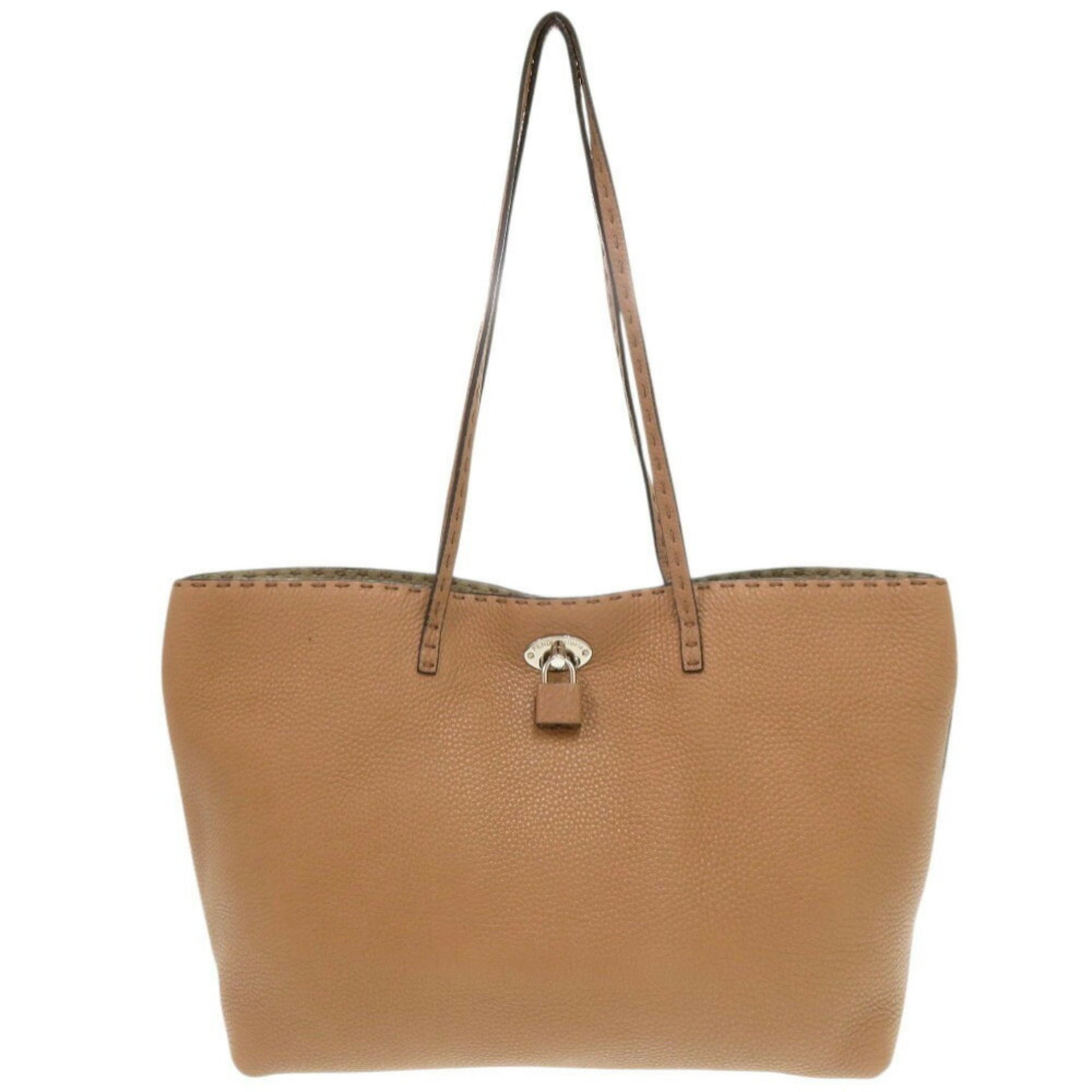 Fendi Selleria Carla Brown Leather Tote Bag, Handbag, Brown, 0024FENDI