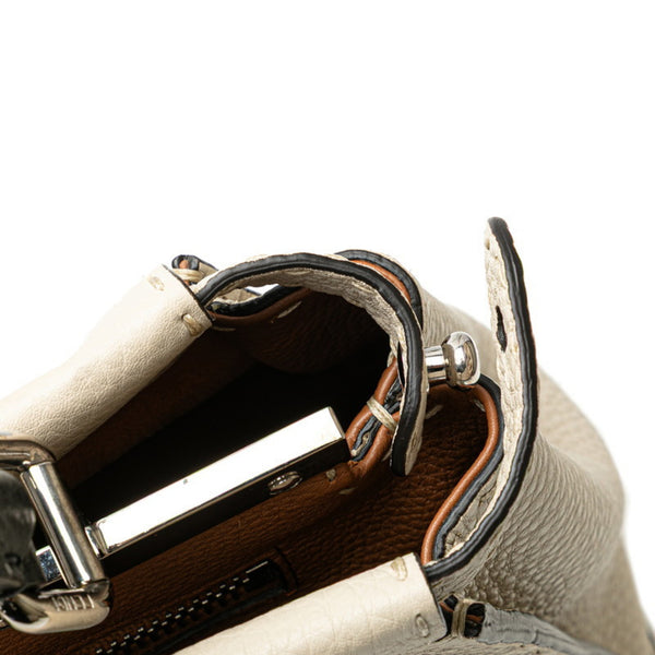 Fendi Selleria Peekaboo Regular Handbag/Shoulder Bag, 2-Way, 8BN290, Ivory/White Leather, Women\'s, FENDI