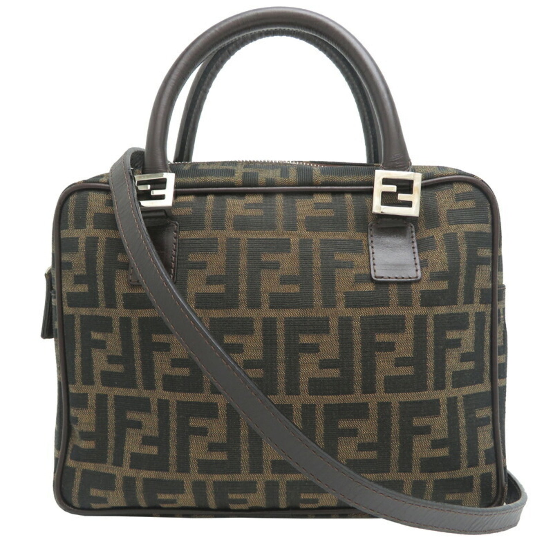 Fendi Shoulder Bag Women\'s Handbag Canvas Zucca Pattern (Brown)