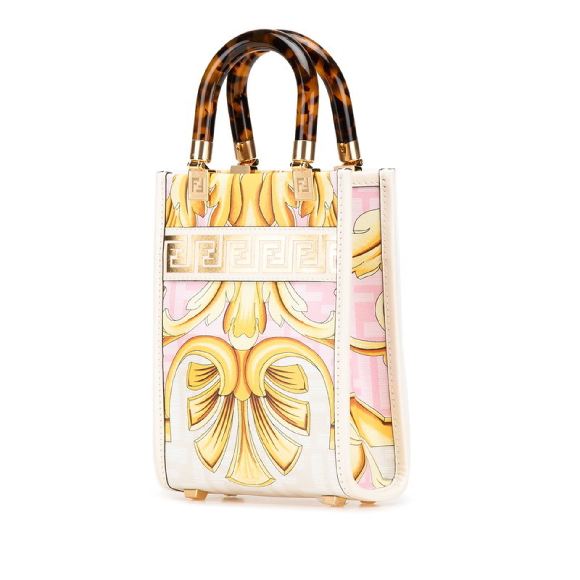 Fendi Sunshine Shopper Mini Shoulder/Handbag, 2-Way, 8BS051, White, Beige, Multicolor, Plastic, Women\'s, FENDI