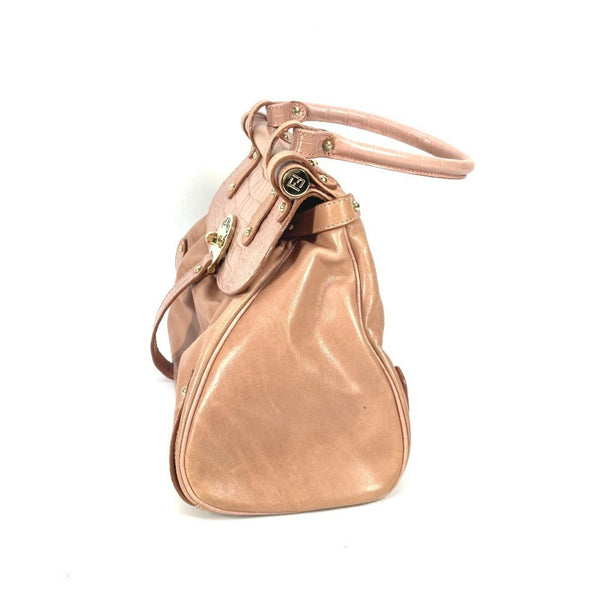 FENDI Turnlock Shoulder Handbag Tote Bag Leather Women\'s Pink