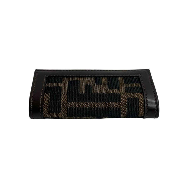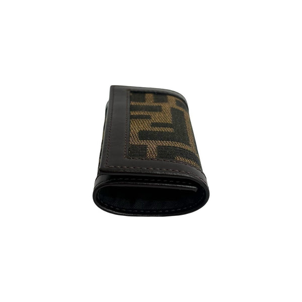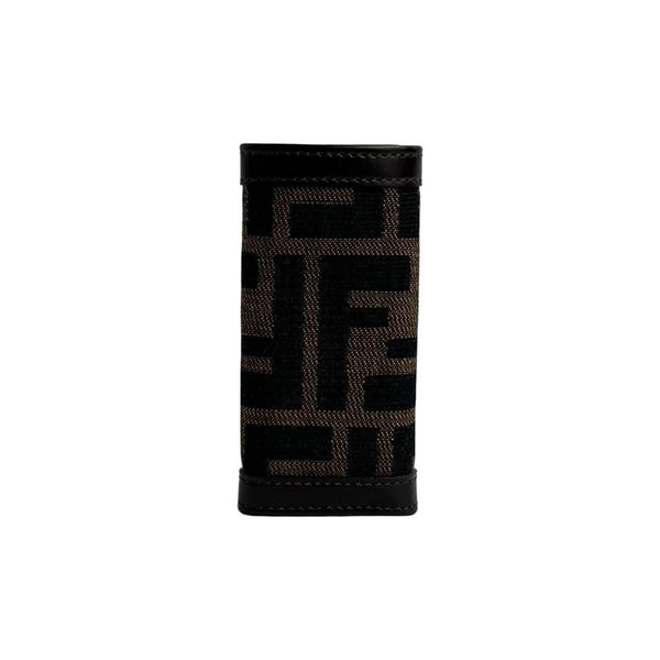 FENDI Zucca FF Leather Canvas 4-Ring Key Case Cover Brown/Black 22769