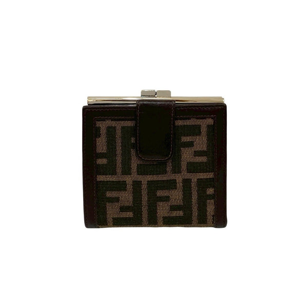 FENDI Zucca Leather and Canvas Bifold Wallet, Brown, 12548