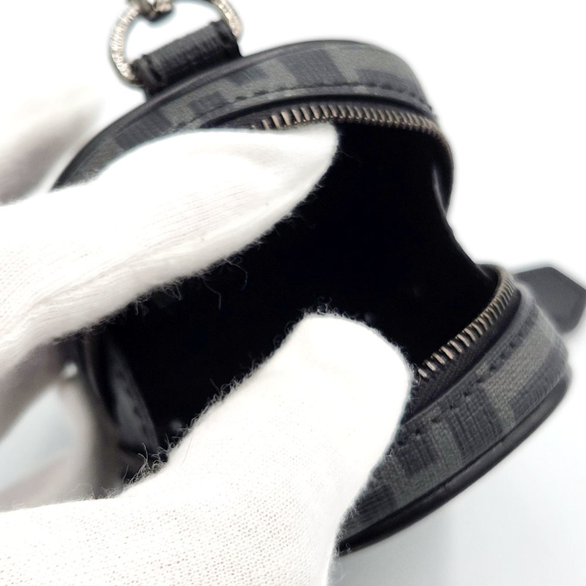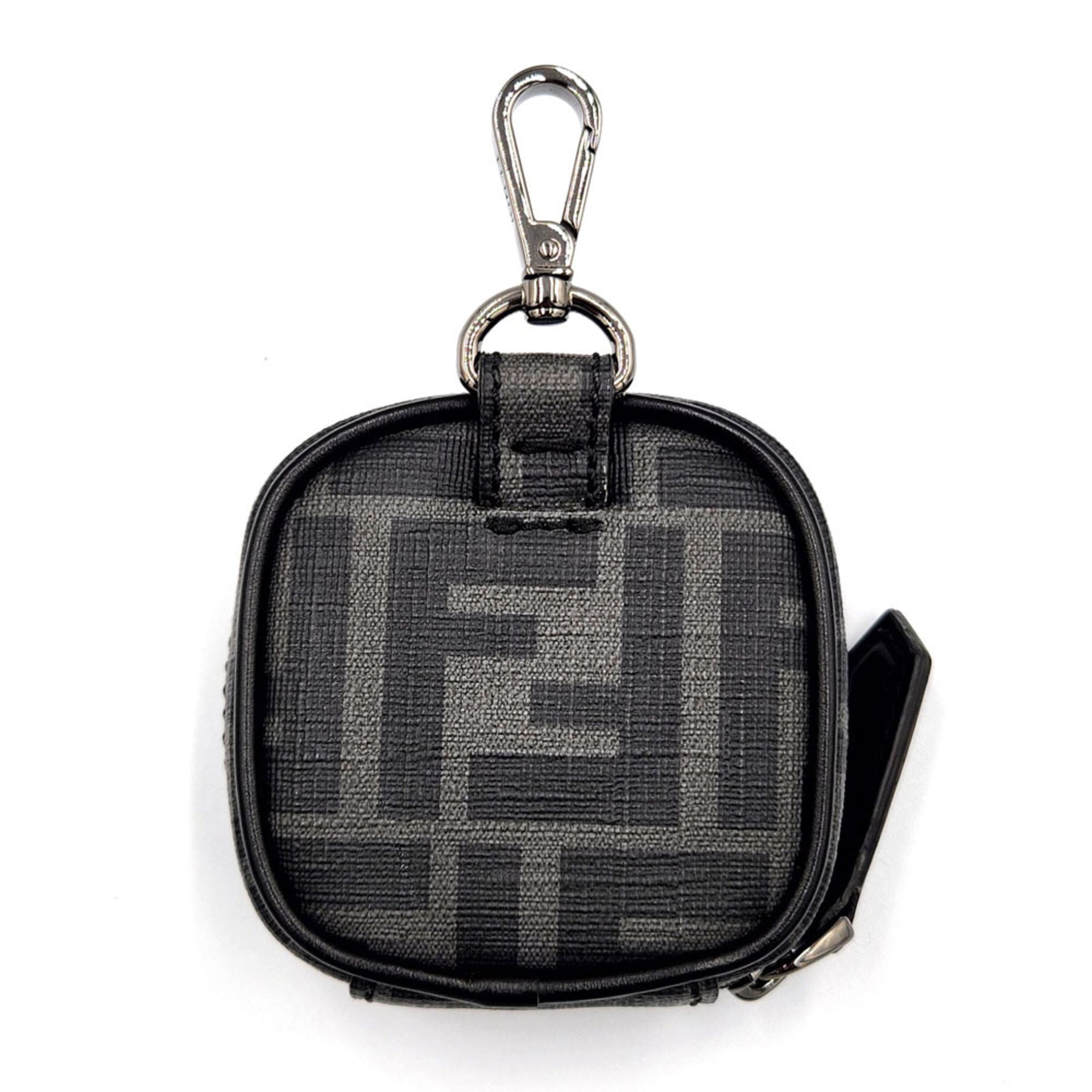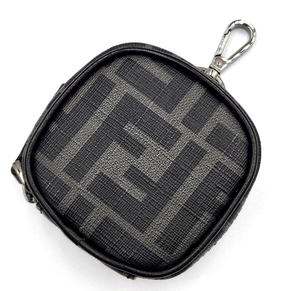 FENDI ZUCCA Mini Pouch Earphone Case 7AS121 Black Canvas Bag Charm Key Holder Women Men