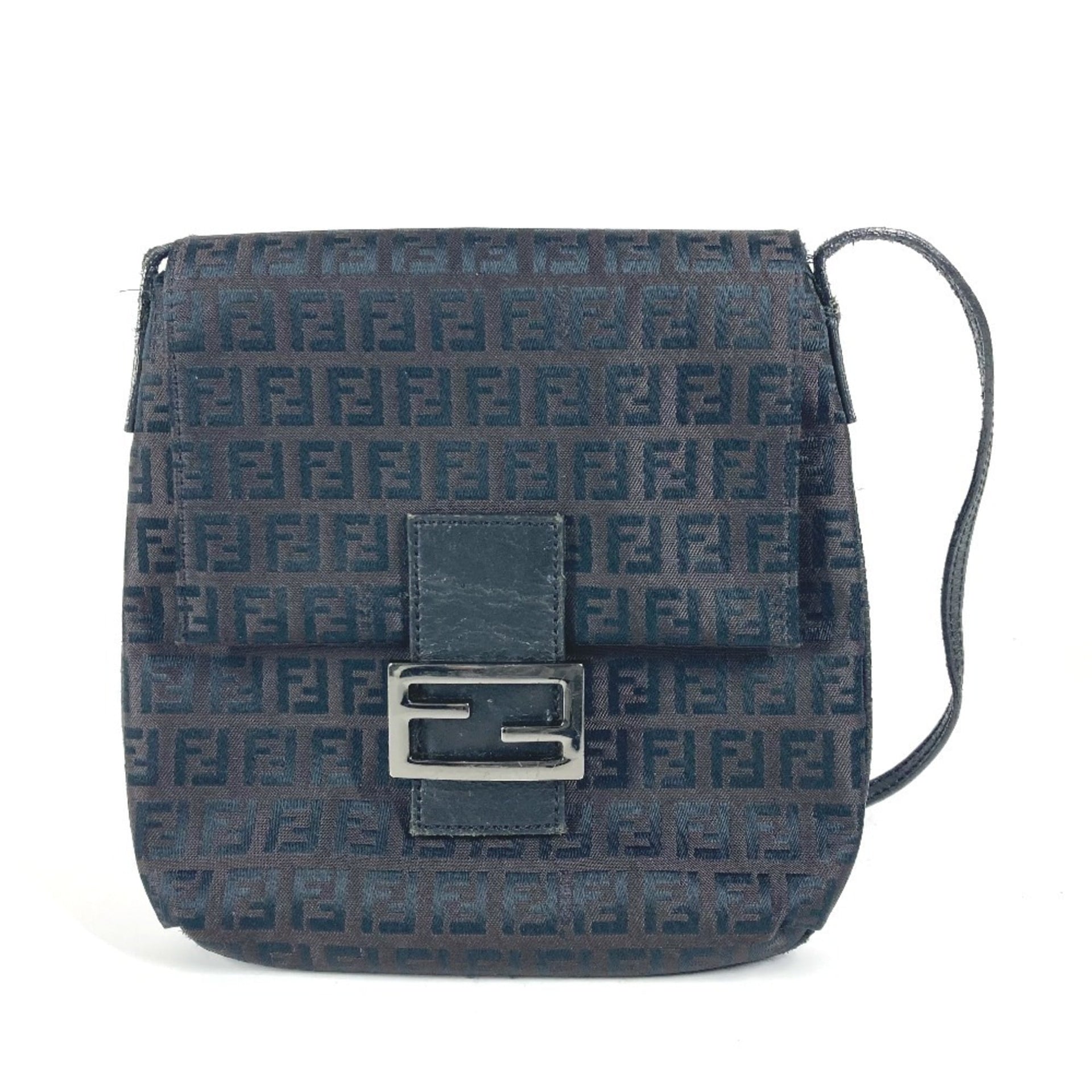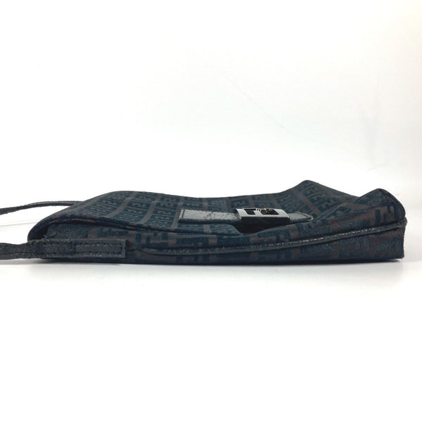 FENDI Zucca Zucchino Bag Flap Pochette Crossbody Shoulder Canvas Leather Women\'s Black