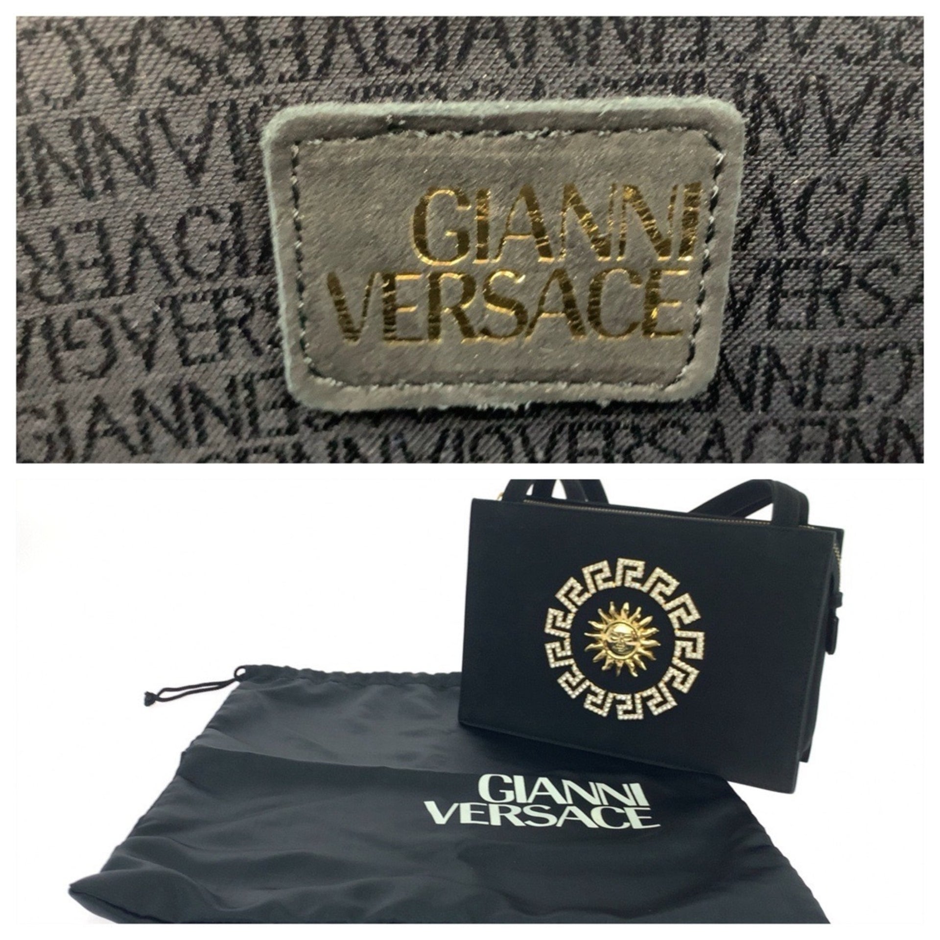 Gianni Versace Vintage Sunburst Black Suede Shoulder Bag with Gold Hardware, Women\'s Tote