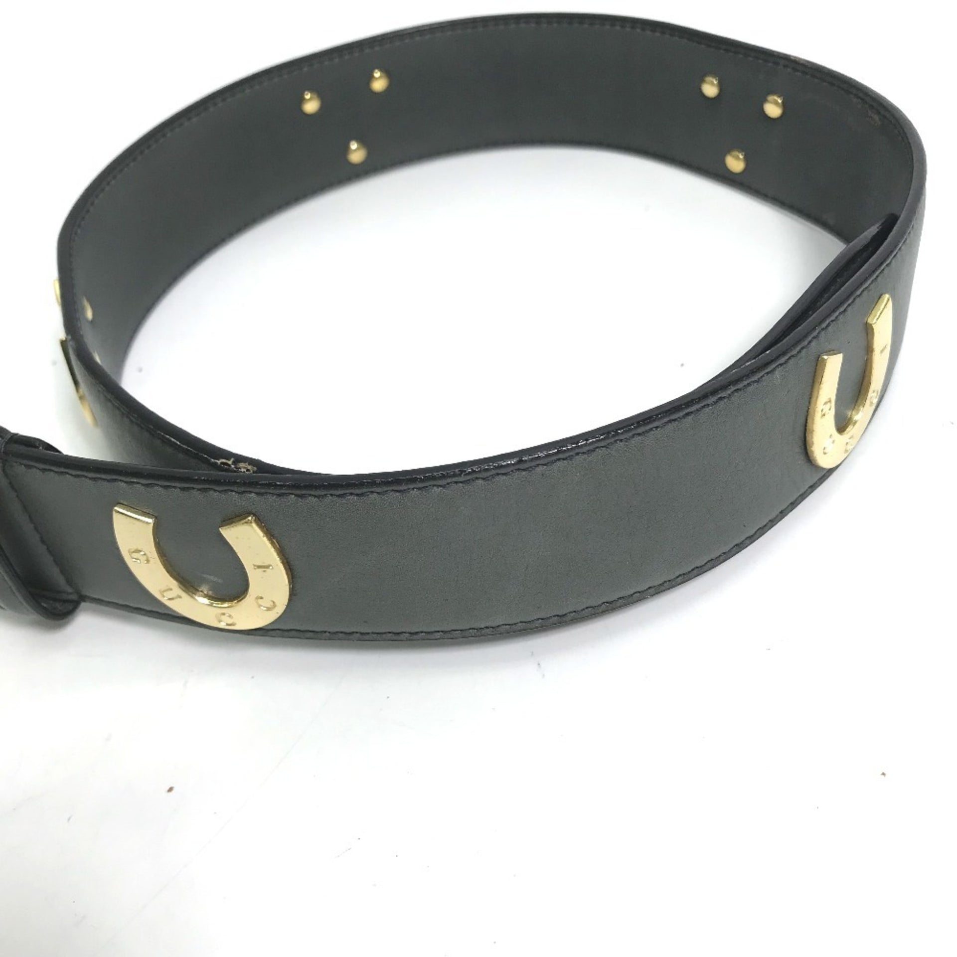 GUCCI 037.194.0923 Horseshoe Pants Belt, Leather, Women\'s, Gray