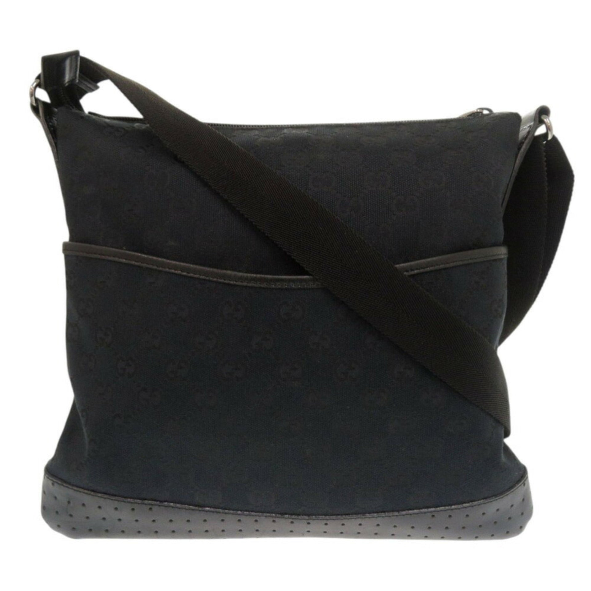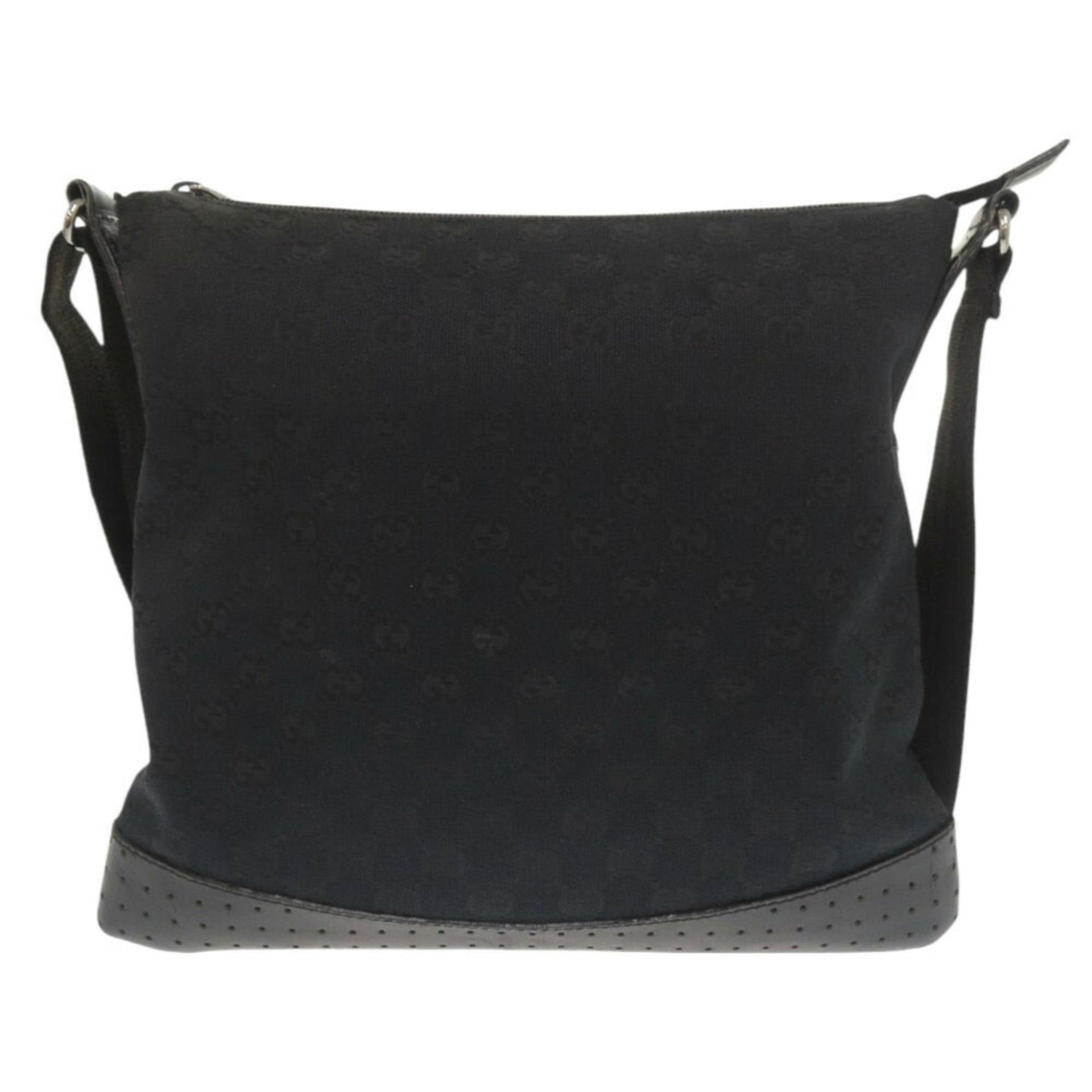 Gucci 145857 GG Canvas Leather Black Shoulder Bag 1543GUCCI