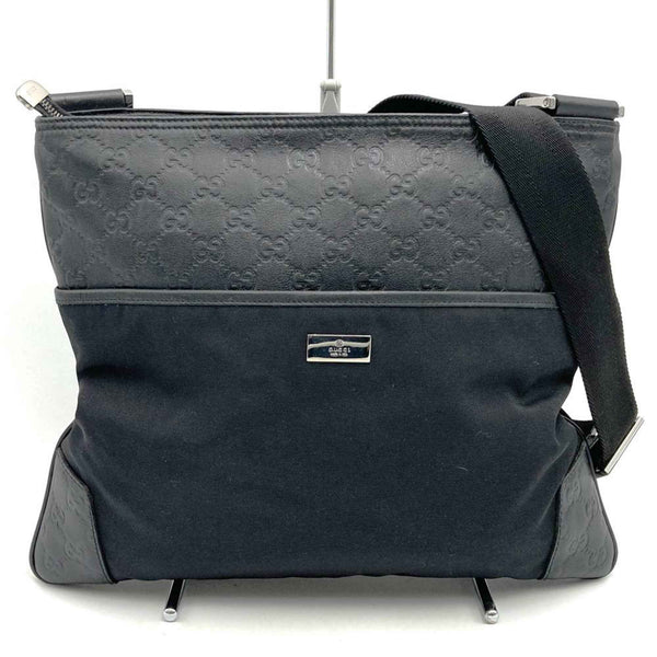 GUCCI 161822 Guccissima Shoulder Bag in Black Leather for Men and Women