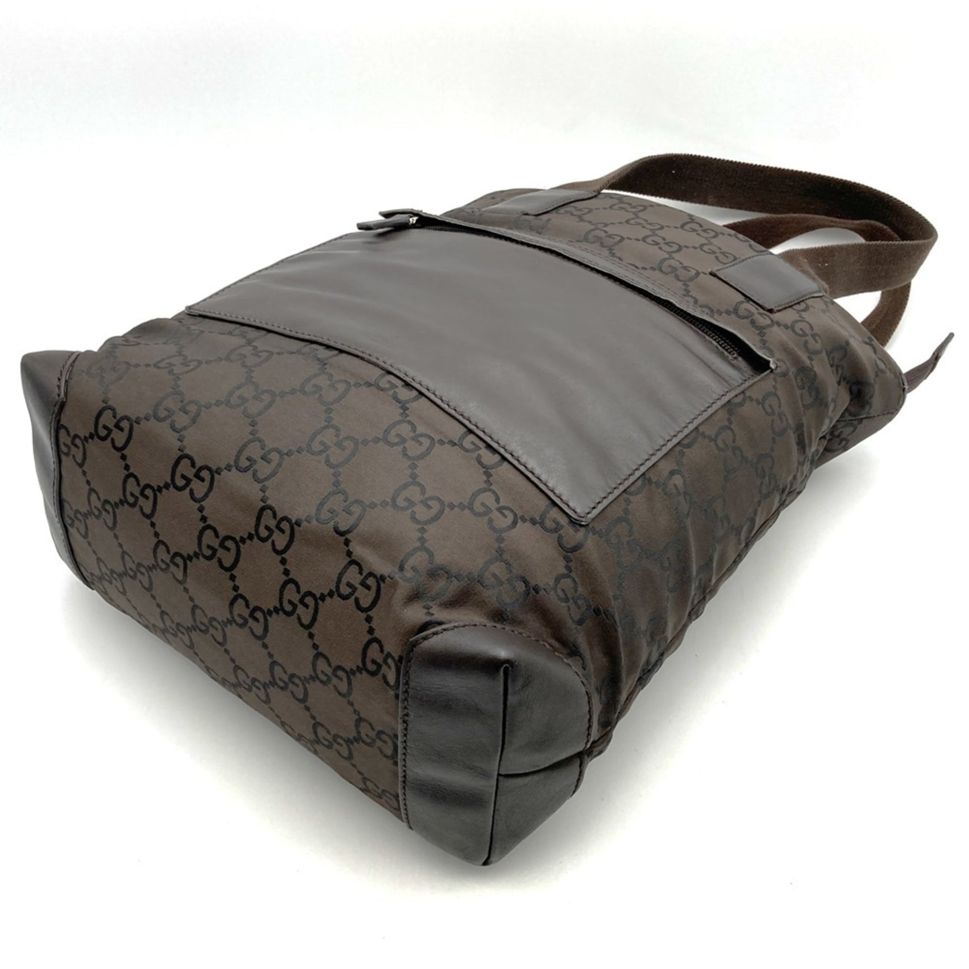 GUCCI 180450 Tote Bag GG Line Nylon Leather Brown Women\'s Men\'s