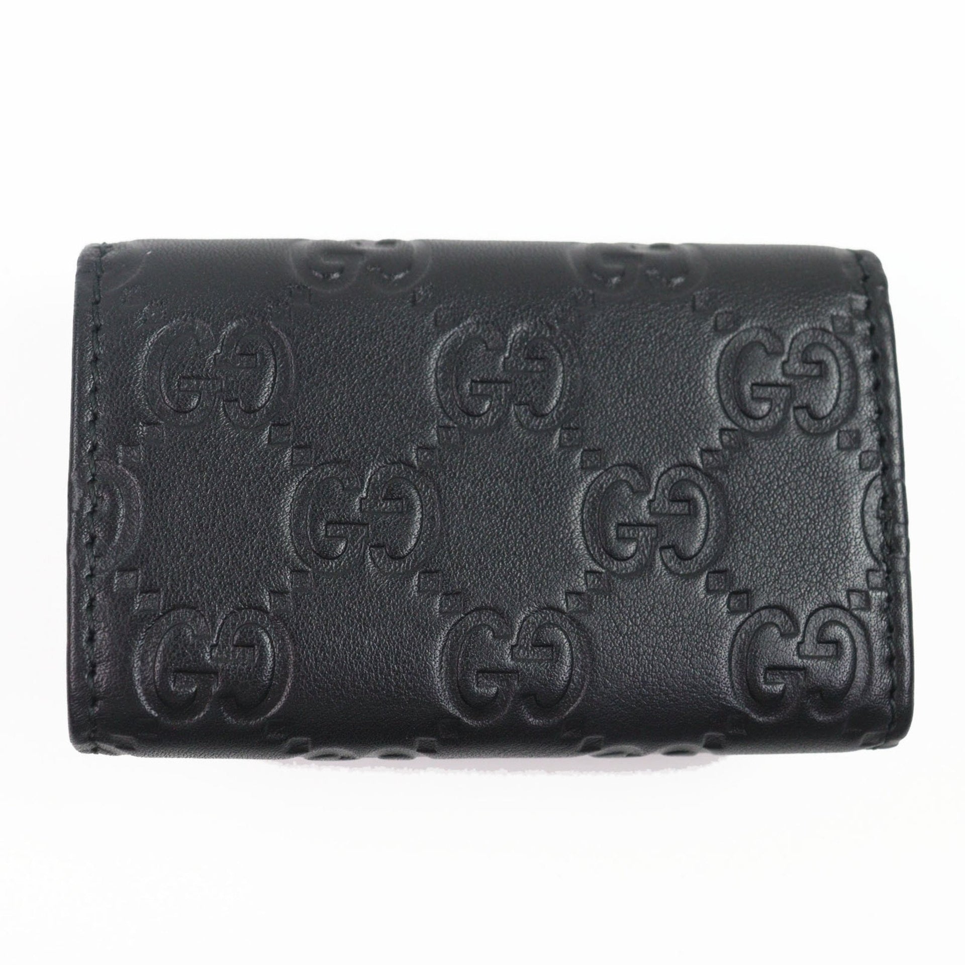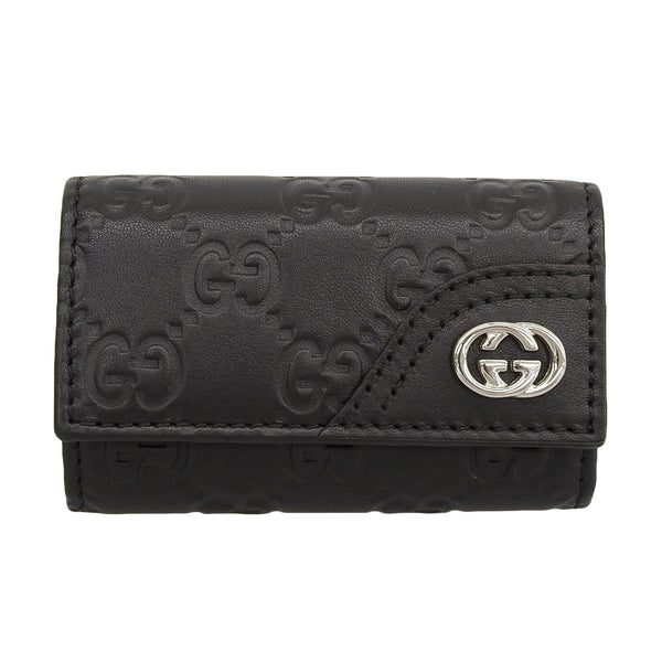 GUCCI 181680 Guccissima Interlocking G 6-Ring Leather Key Case in Black with Silver Hardware and Box, Made Italy, Men\'s