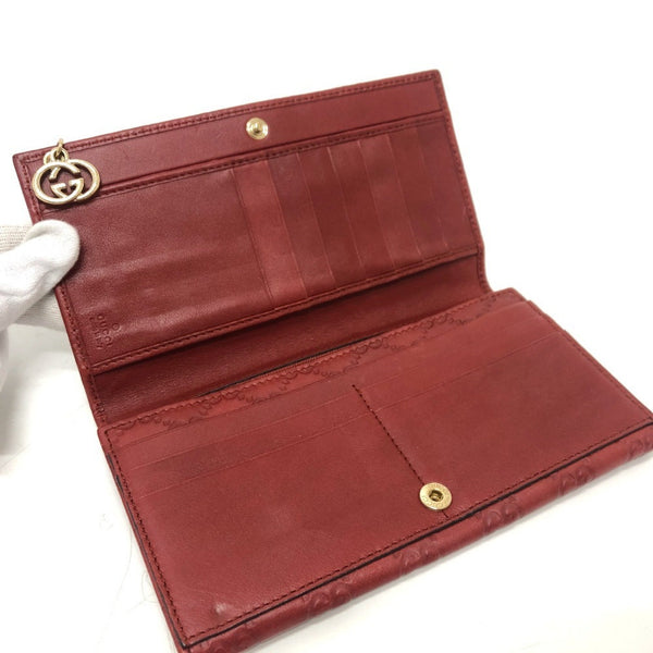 GUCCI 212109 GG Shima Line Wallet Flap Long Leather Women\'s Red