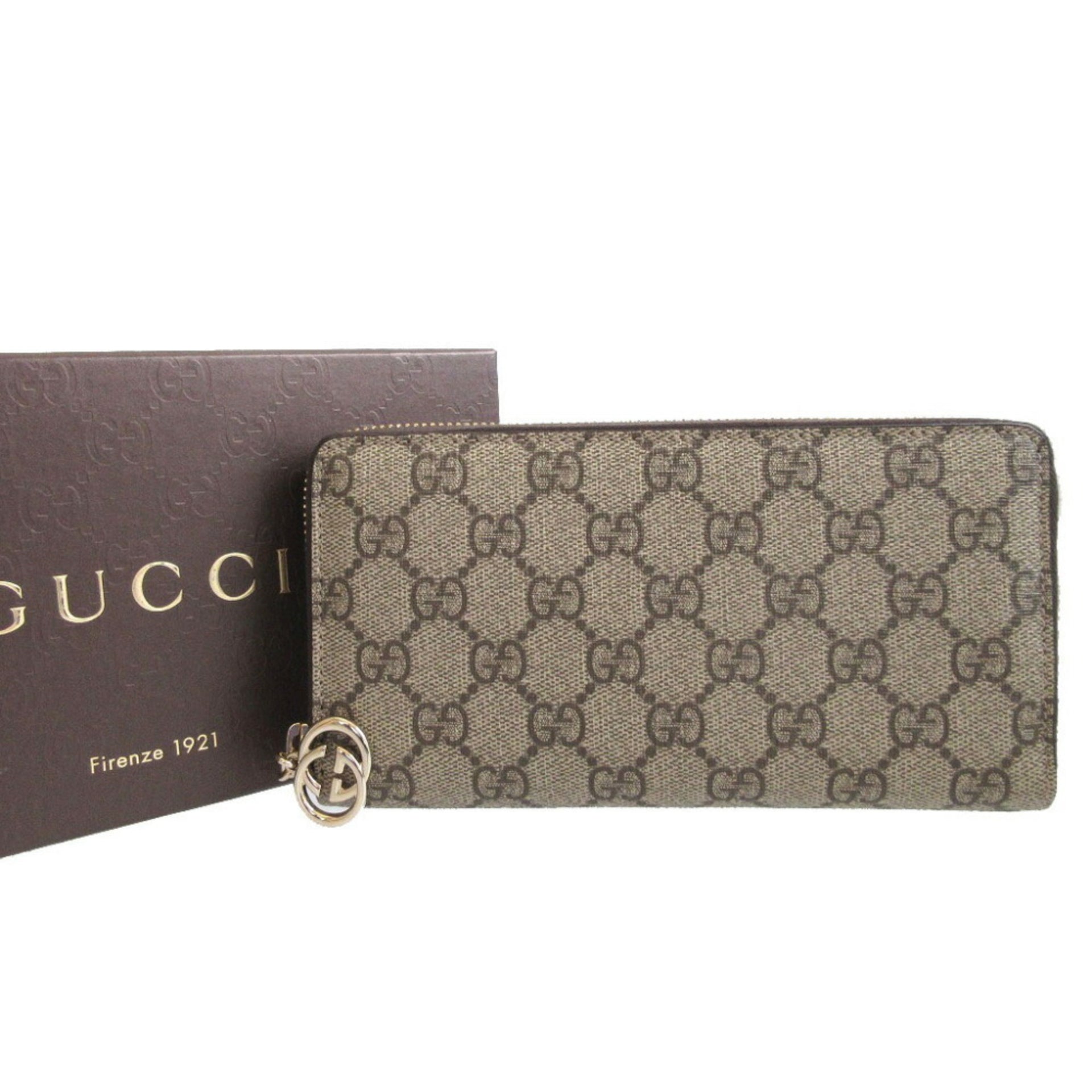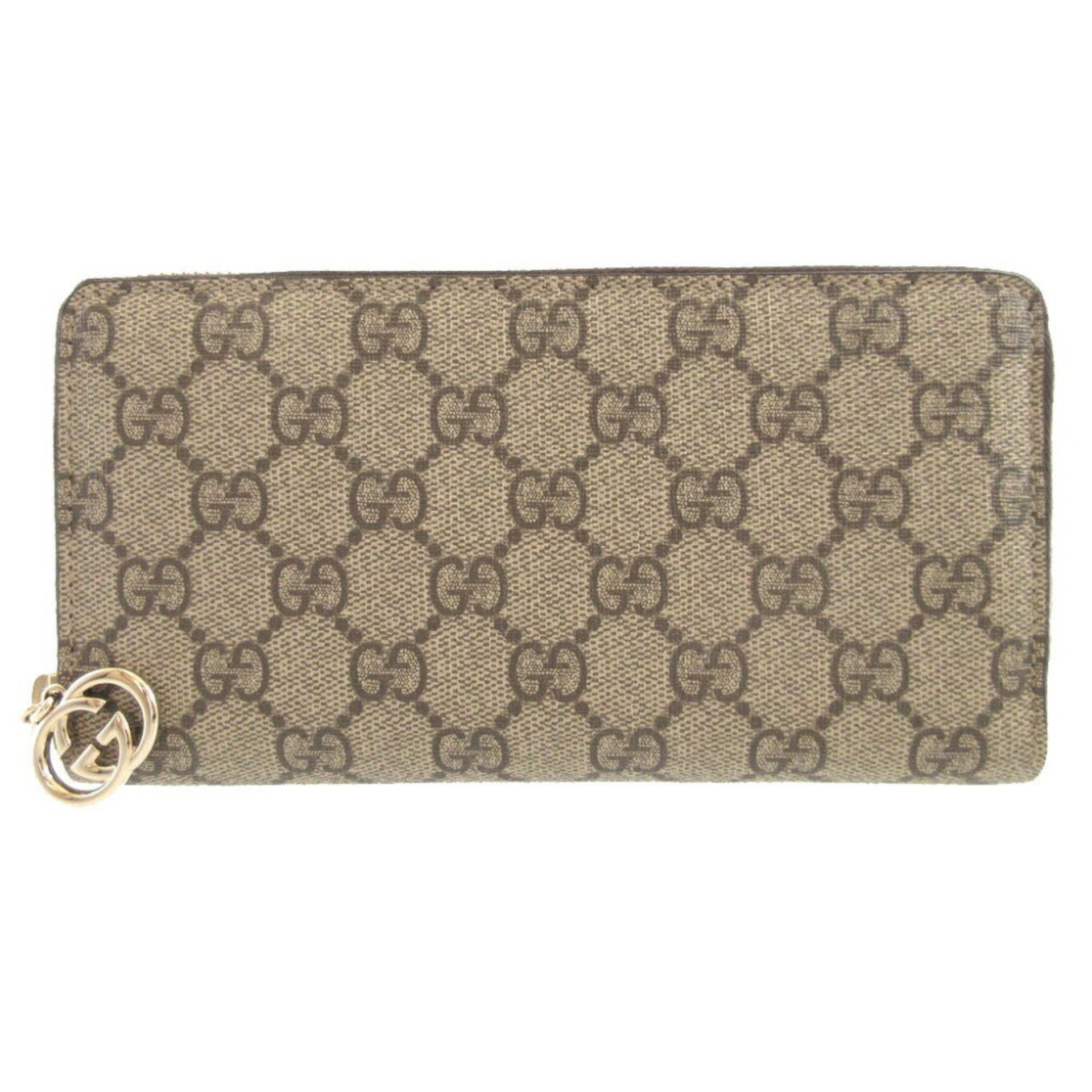 Gucci 307982 GG Supreme Leather Beige Brown Round Long Wallet 0415GUCCI