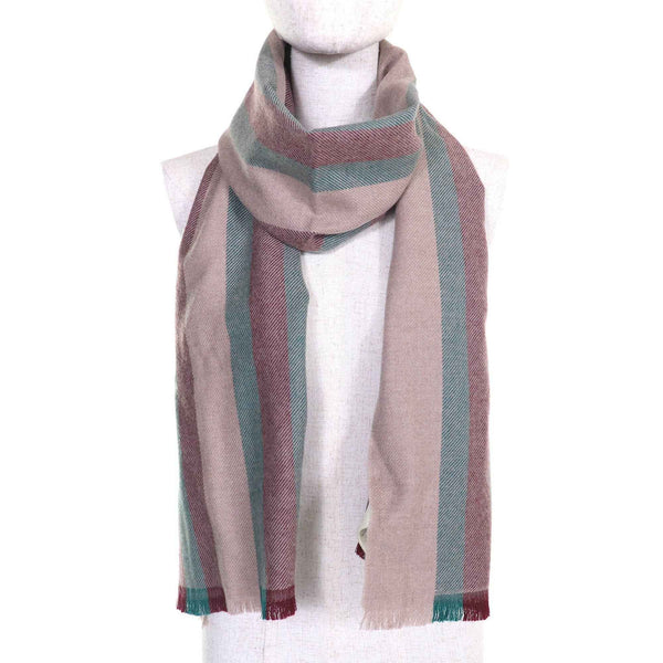 GUCCI 387574 4G200 100% Wool Sherry Line Fringed Shawl/Stole/Scarf, Light Brown, Bold Green, 180cm x 30cm, Made in Italy, Authentic, Women\'s