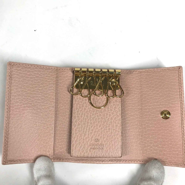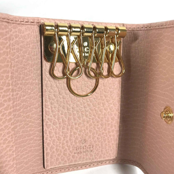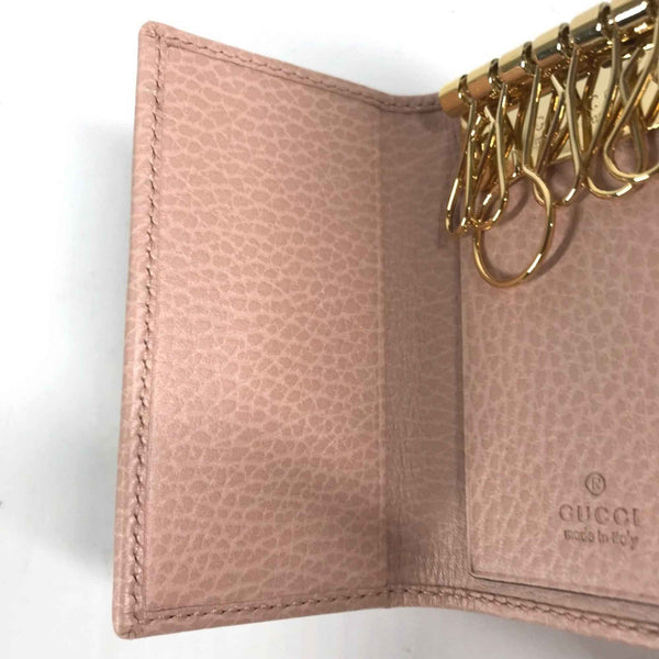 GUCCI 456118 GG Marmot Double G 6-Ring Key Case, Leather, Women\'s, Pink