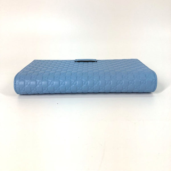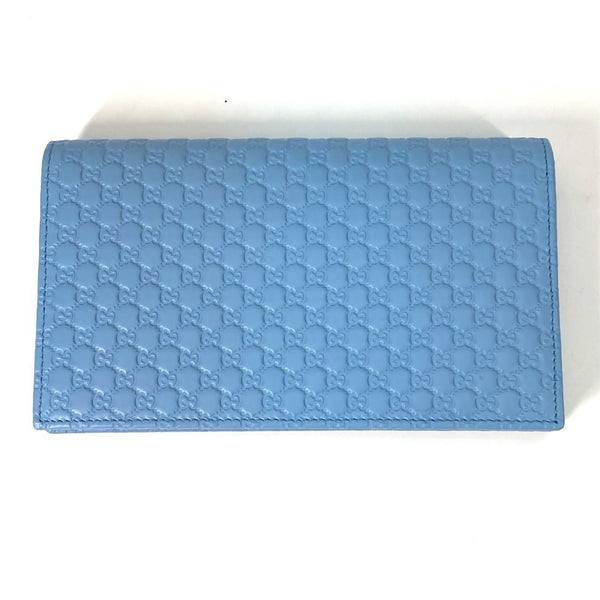 GUCCI 466507 Micro Guccissima Shoulder Wallet, Bifold, Long 3-Way Leather Bag, Women\'s, Blue, Like New
