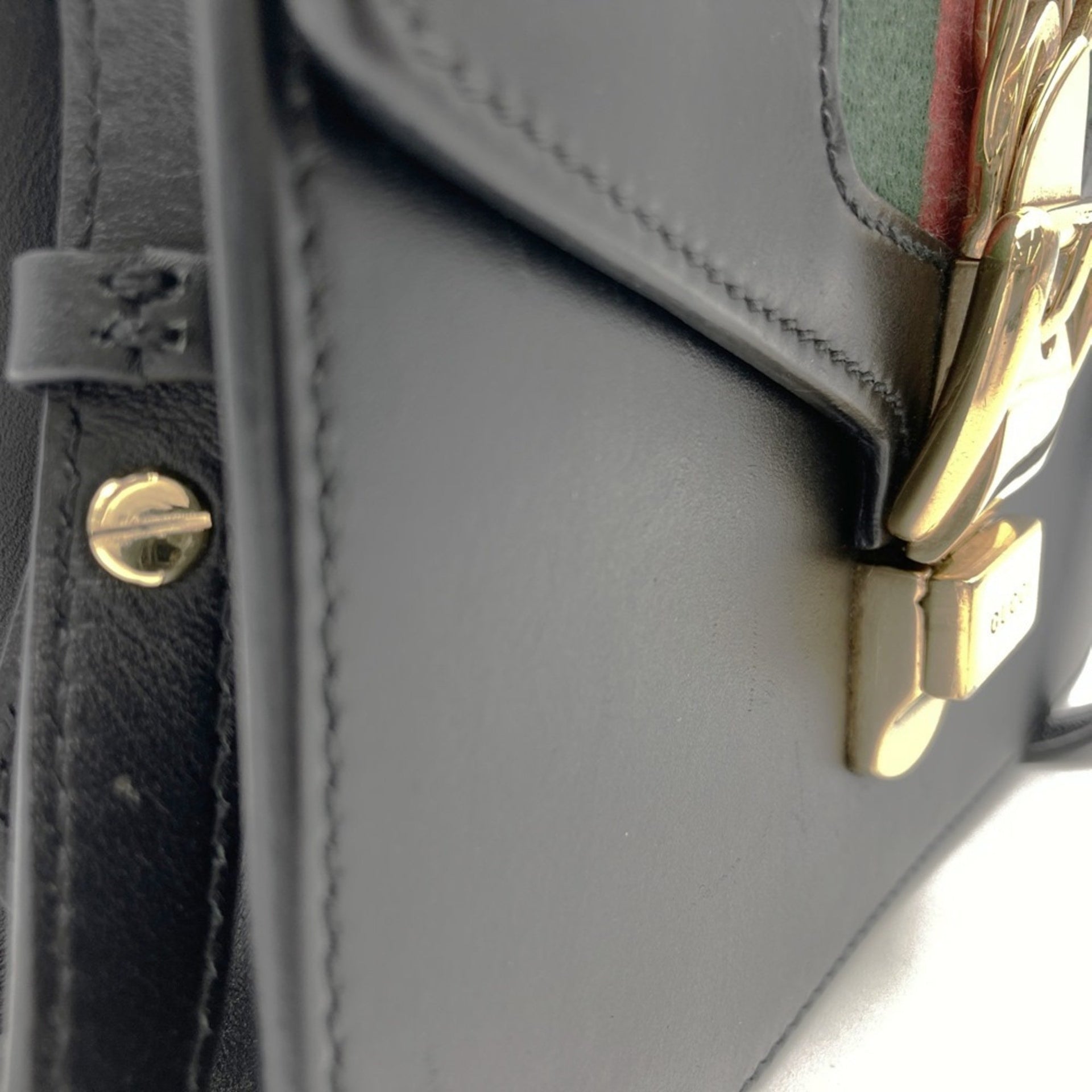 GUCCI 470270 Sylvie Shoulder Bag, Sherry Line Chain, Leather, Black, Women\'s